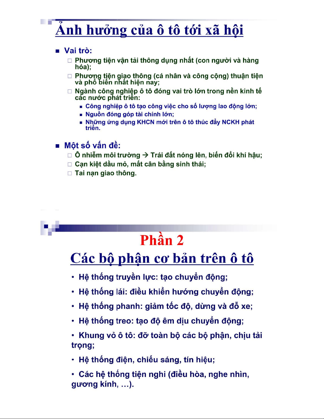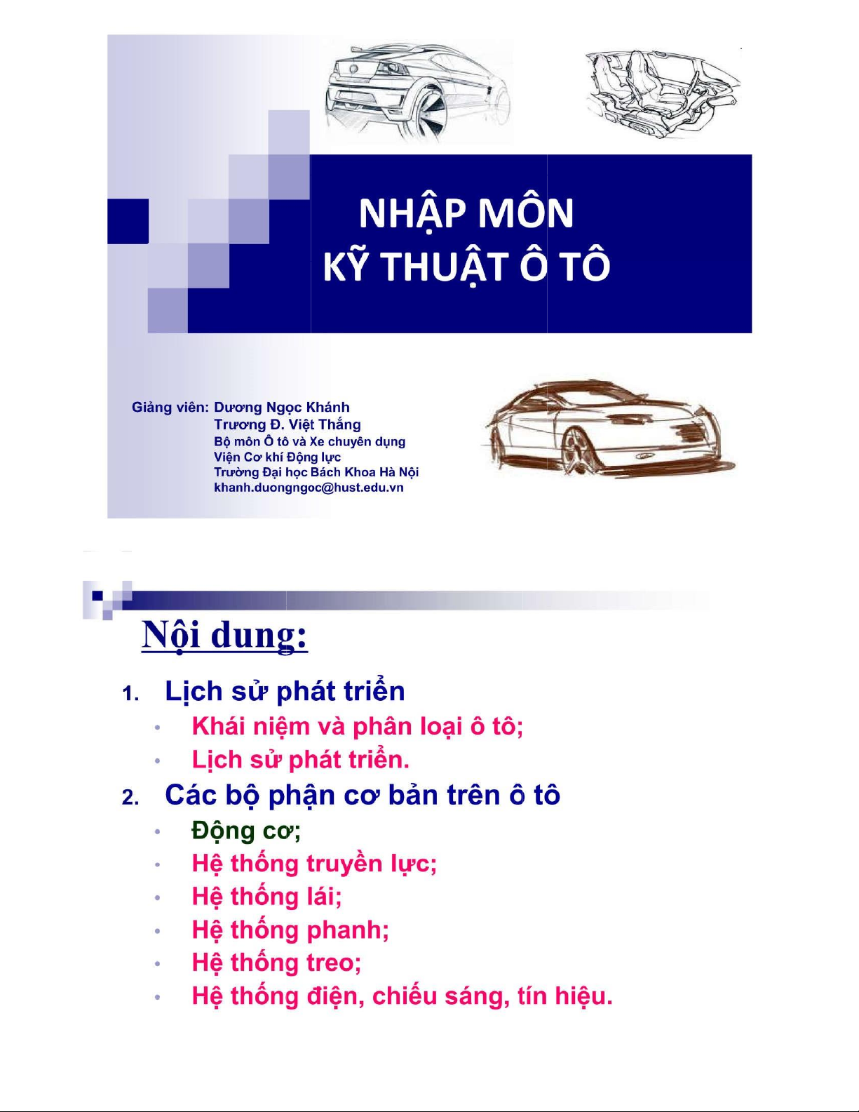 Bài giảng môn Nhập môn kĩ thuật ô tô | Trường Đại học Bách Khoa Hà Nội