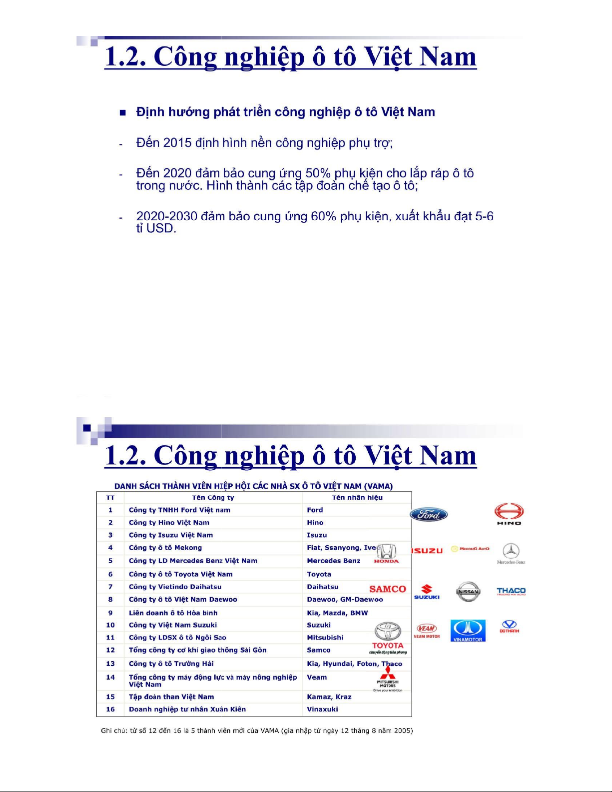 Có thể chia công nghiệp ô tô thế giới thành 3 giai đoạn chính: Trước 1945: Nền công nghiệp ô tô của thế giới chủ yếu tại Mỹ. Giai đoạn 1945 - 1960: Sản lượng công nghiệp ô tô của Nhật Bản và Tây Âu tăng mạnh song còn nhỏ bé so với Mỹ. Tài liệu được sưu tầm gồm 43 trang, giúp các bạn ôn luyện và phục vụ cho việc học tập, đạt kết quả tốt. Mời các bạn đón xem!