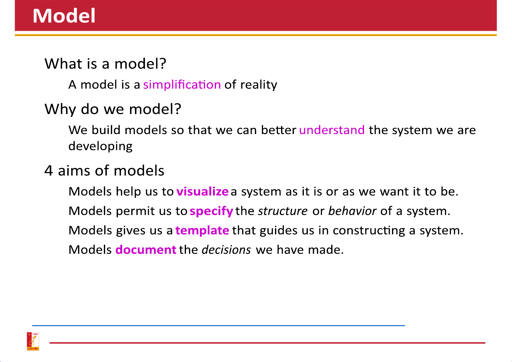 Programmers want to know how Are connected to Simplify and decompose reality Expose potential flaws Are varied – no single model is sufficient