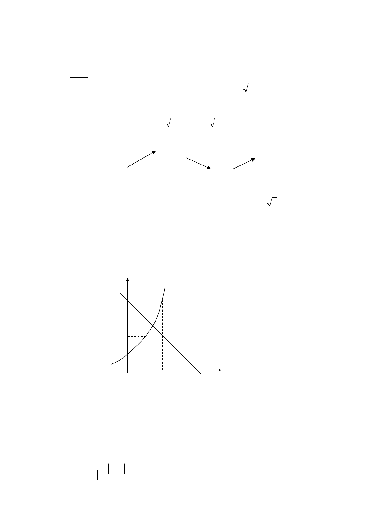 f’(x) = 3x2 - 1 , f’(x) = 0 <=> x = 1/ 3 Bảng biến thiên: x - − 1/ 3 1/ 3 + f’(x) + 0 - 0 + yCĐ>0 + f(x) - yCT>0