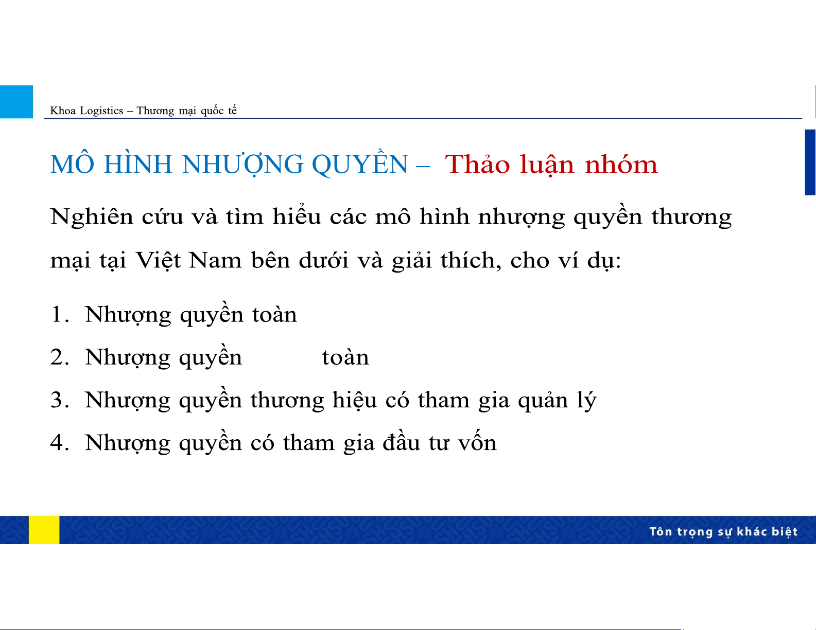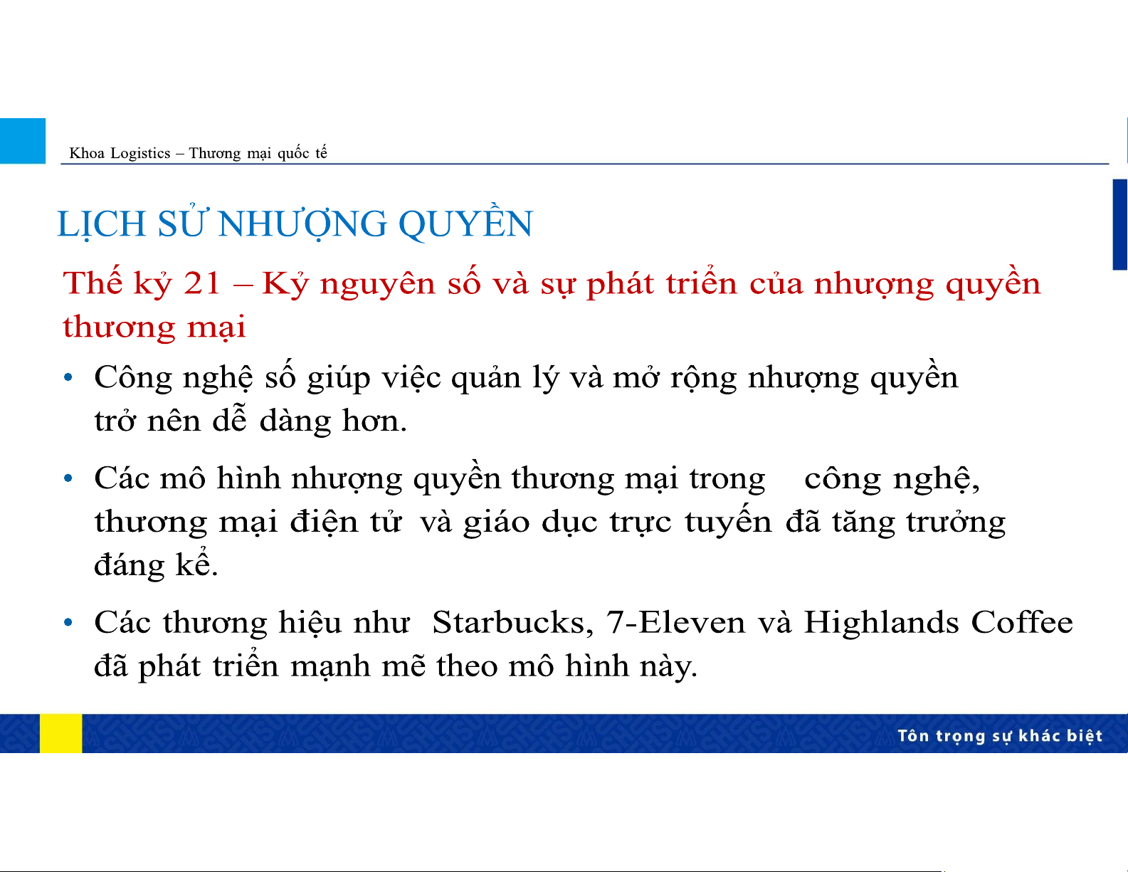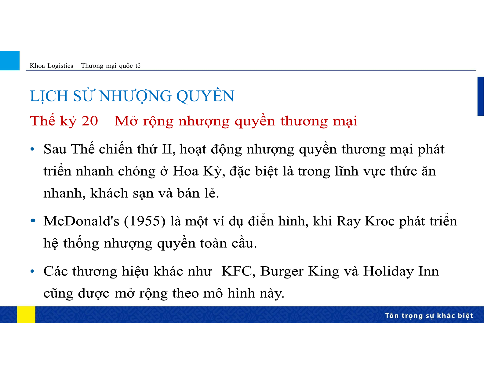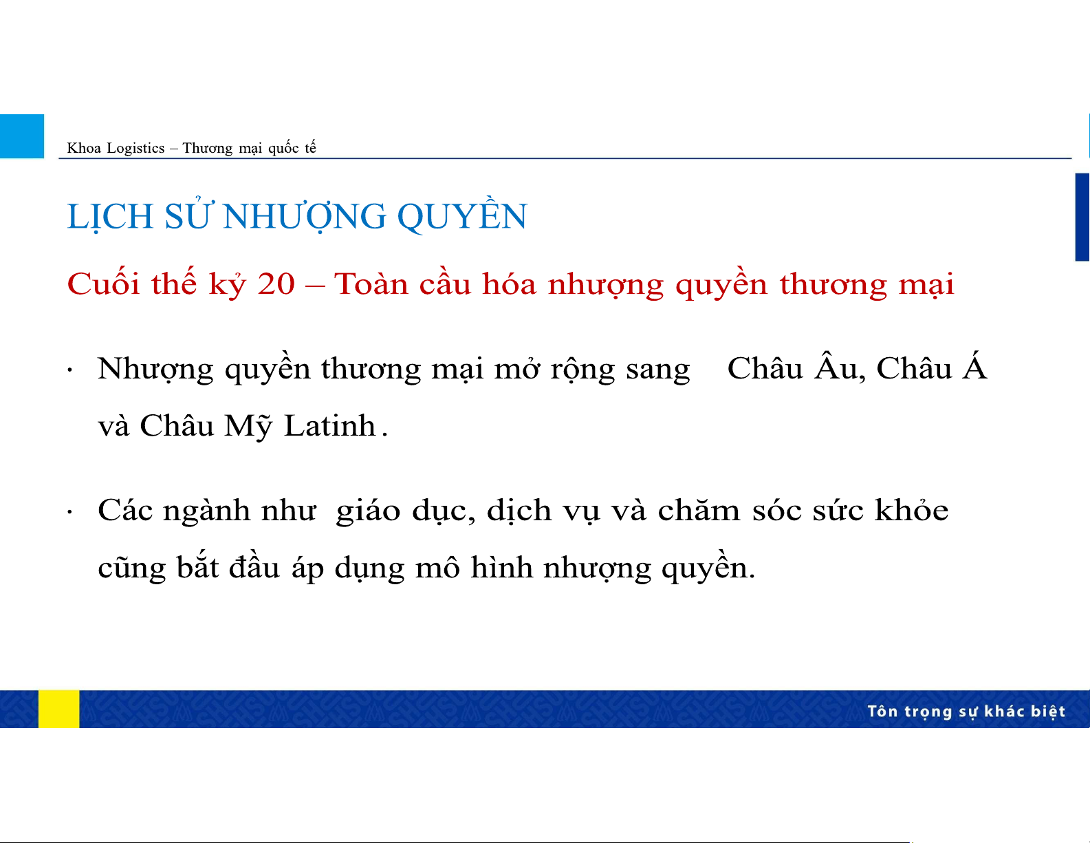 Khoa Logistics – Thương mại quốc tế LỊCH SỬ NHƯỢNG QUYỀN