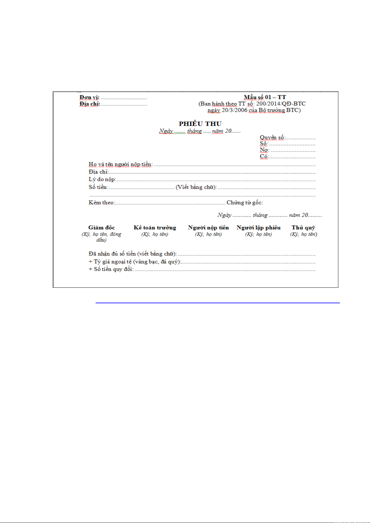 Mẫu phiếu thu theo thông tư 200/2014/TT-BTC Hình 2.2