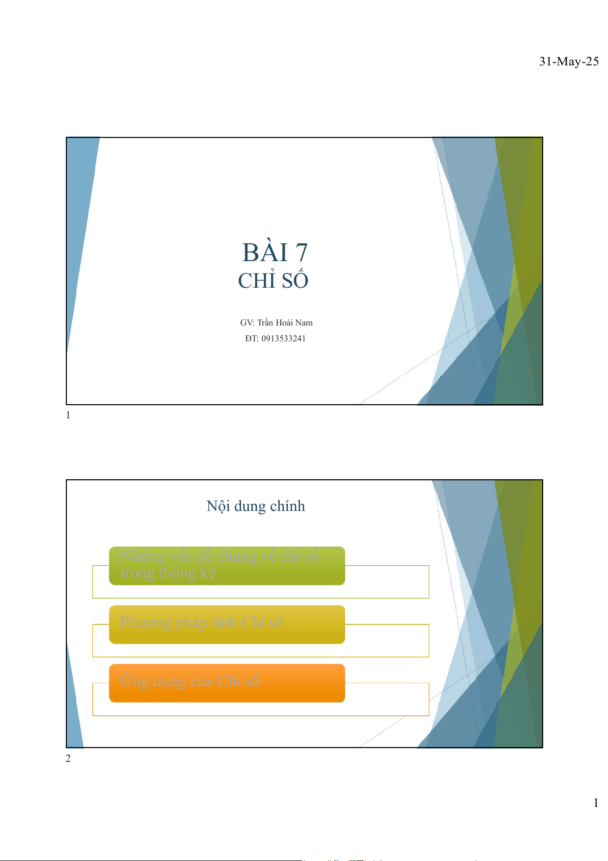 31-May-25 BÀI 7 CHỈ SỐ GV: Trần Hoài Nam ĐT: 0913533241 1 Nội dung chính