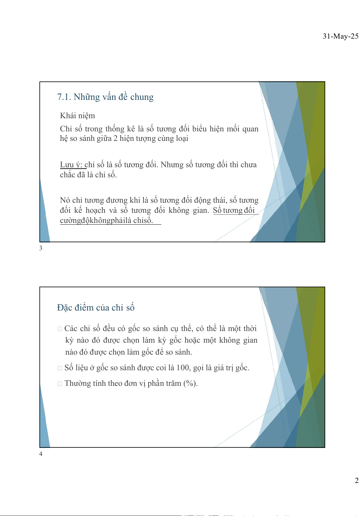 Phương pháp tính Chỉ số Ứng dụng của Chỉ số 2 1 31-May-25 7.1. Những vấn đề chung Khái niệm