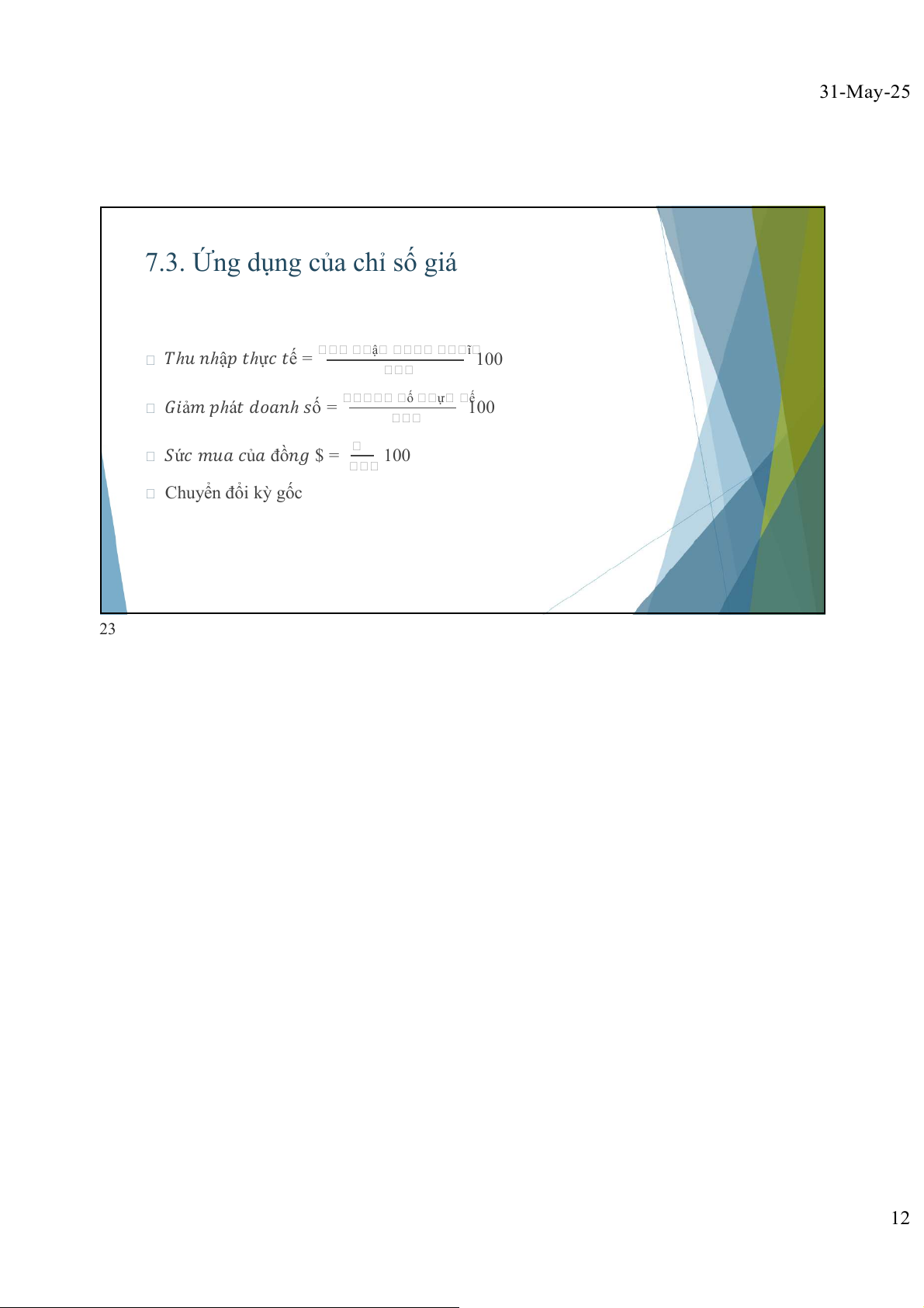 𝑆ứ𝑐 𝑚𝑢𝑎 𝑐ủ𝑎 đồ𝑛𝑔 $ = 100 Chuyển đổi kỳ gốc 23 12