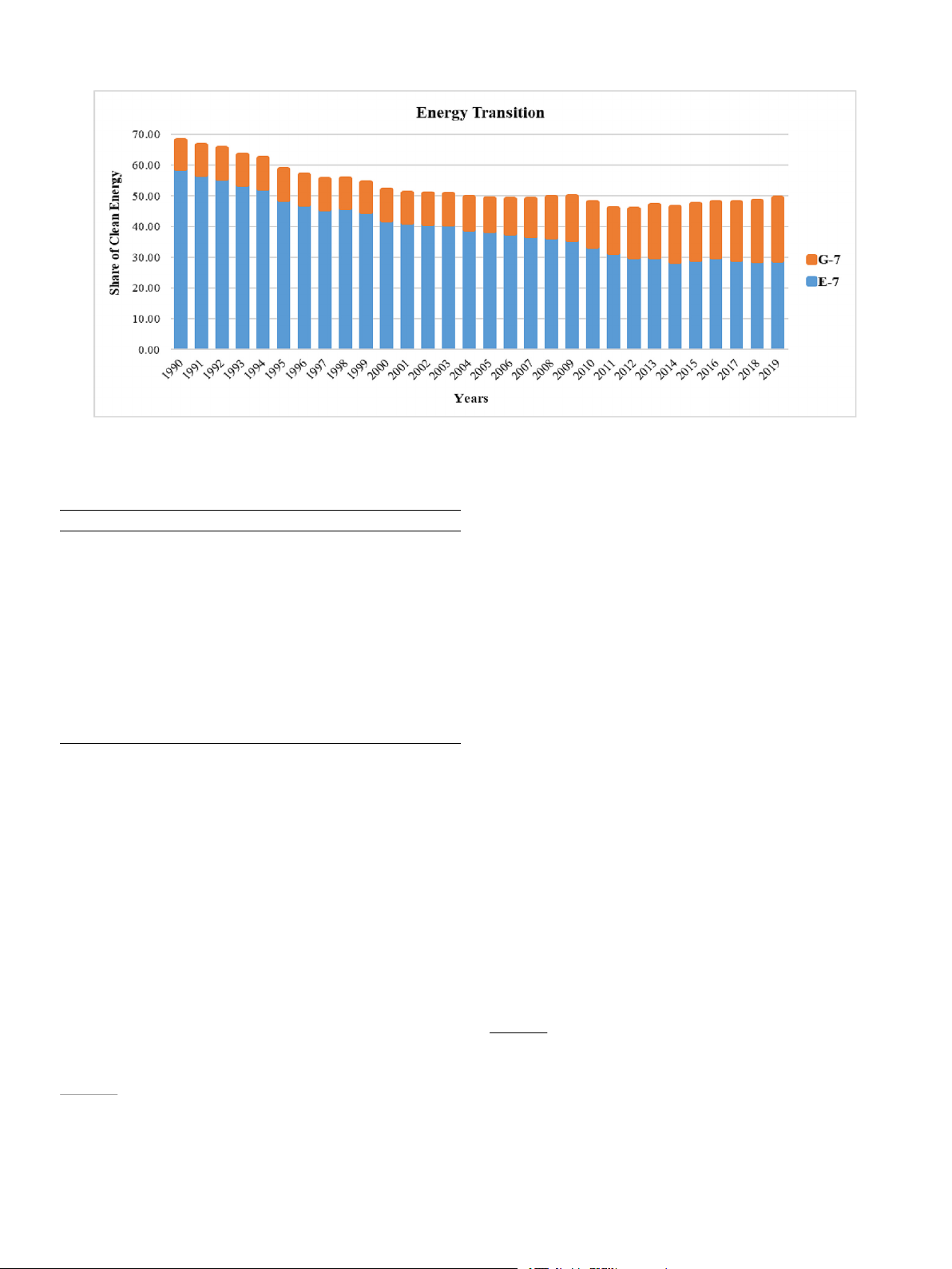 influences energy transition; however, it has an insignificant effect on the E-7 countries. The study outcomes are