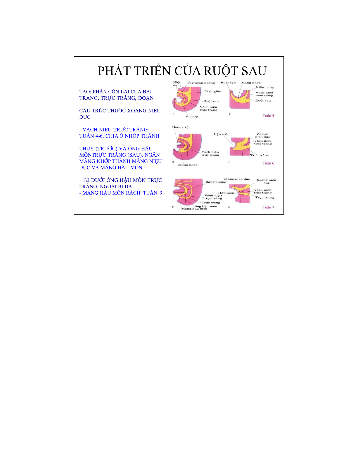 tuần thứ 7, màng ổ nhớp vỡ ra tạo thành 1 lỗ hậu môn mở vào ruột.