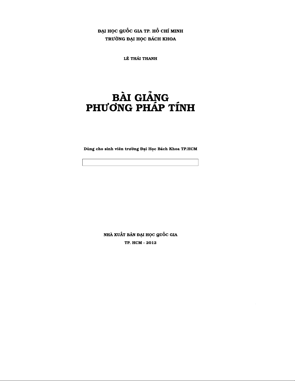 Bài giảng Phương pháp tính GD-0589/176-05 cho sinh viên Bách Khoa