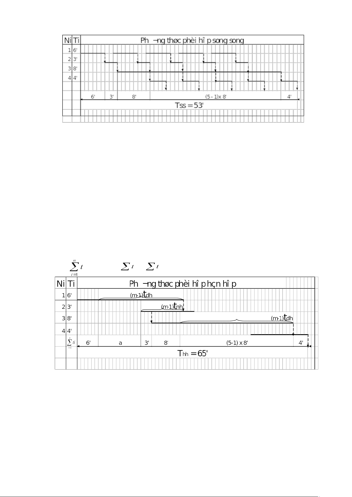 Công thức tổng quát xác định chu kỳ công nghệ khi tổ chức theo dòng song song: T ss = ti + (m-1) . tdn
