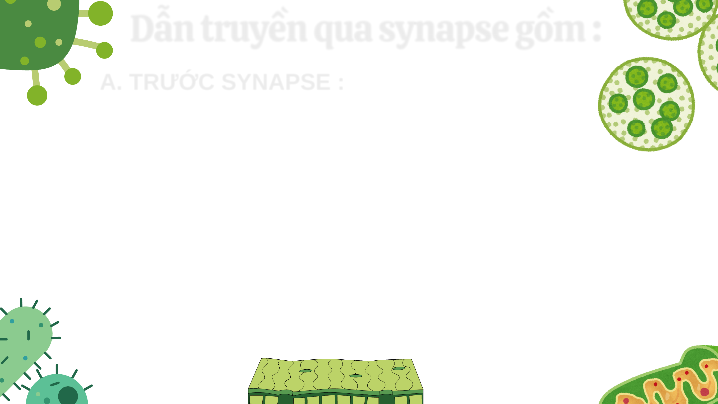 Dẫn truyền qua synapse gồm : A. TRƯỚC SYNAPSE :