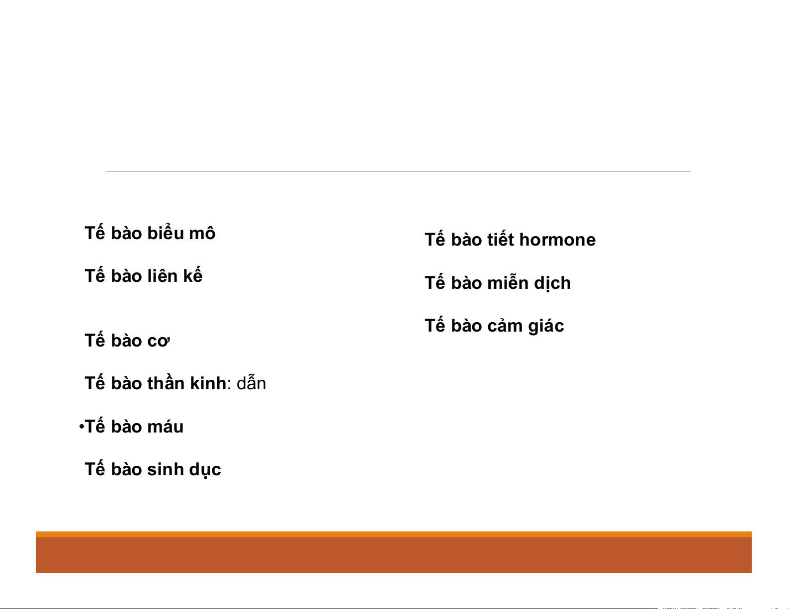 •Tế bào cơ: co rút tạo lực (cơ vân, giác, thính giác…). cơ tim, cơ trơn).