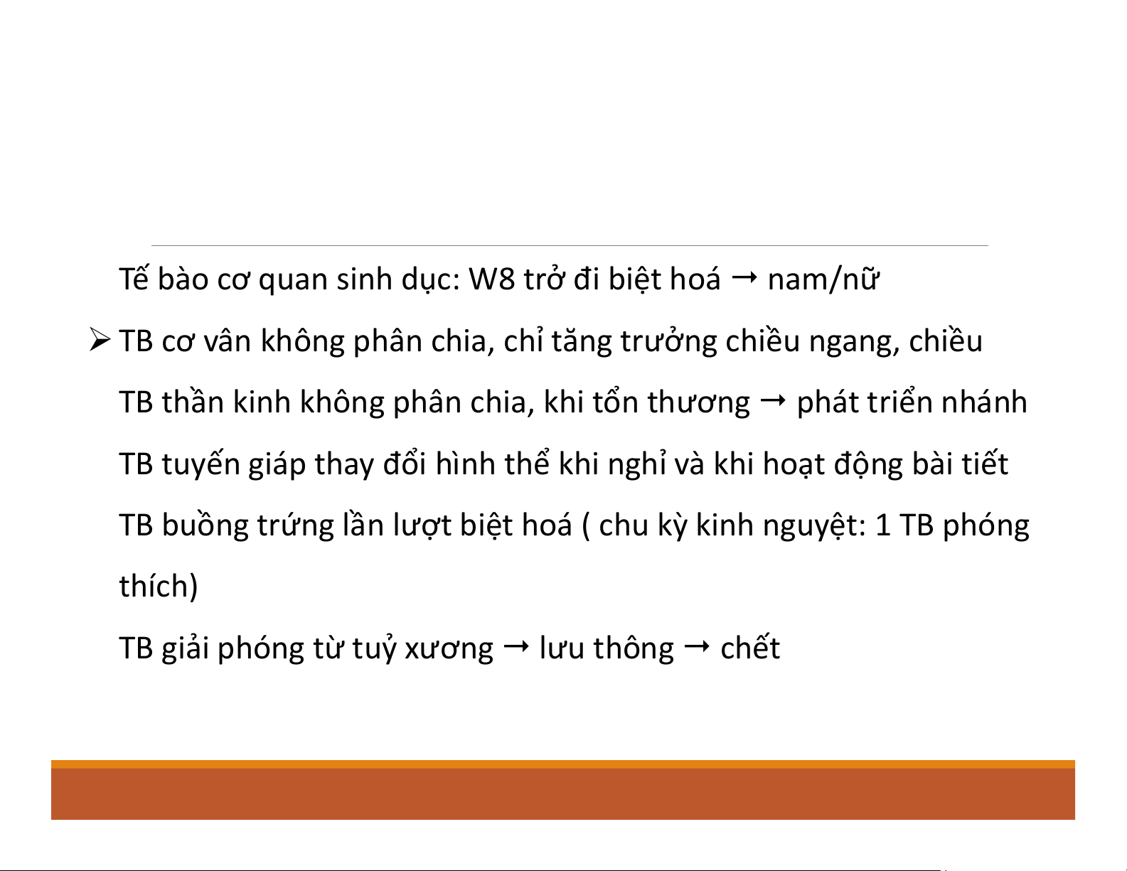 Tế bào cơ quan sinh dục: W8 trở đi biệt hoá nam/nữ