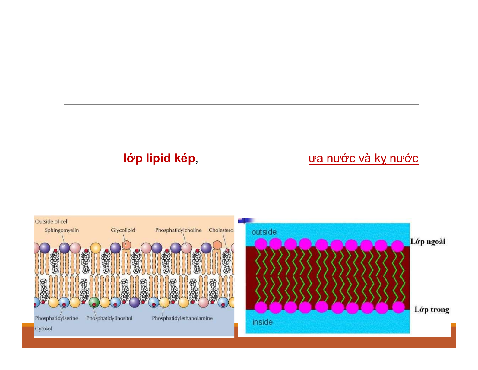 + Thực chất: lớp lipid kép, mềm mại, gồm đầu ưa nước và kỵ nước.