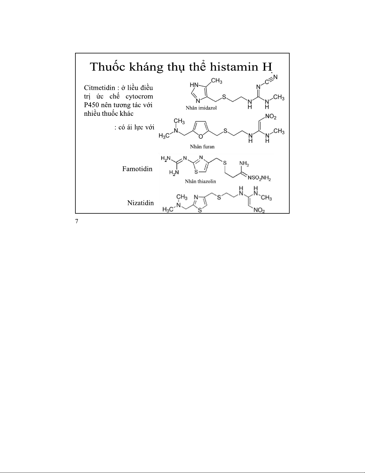 • Thuốc kháng thụ thể H2: cimetidin, ranitidin, famotidin, nizatidin…