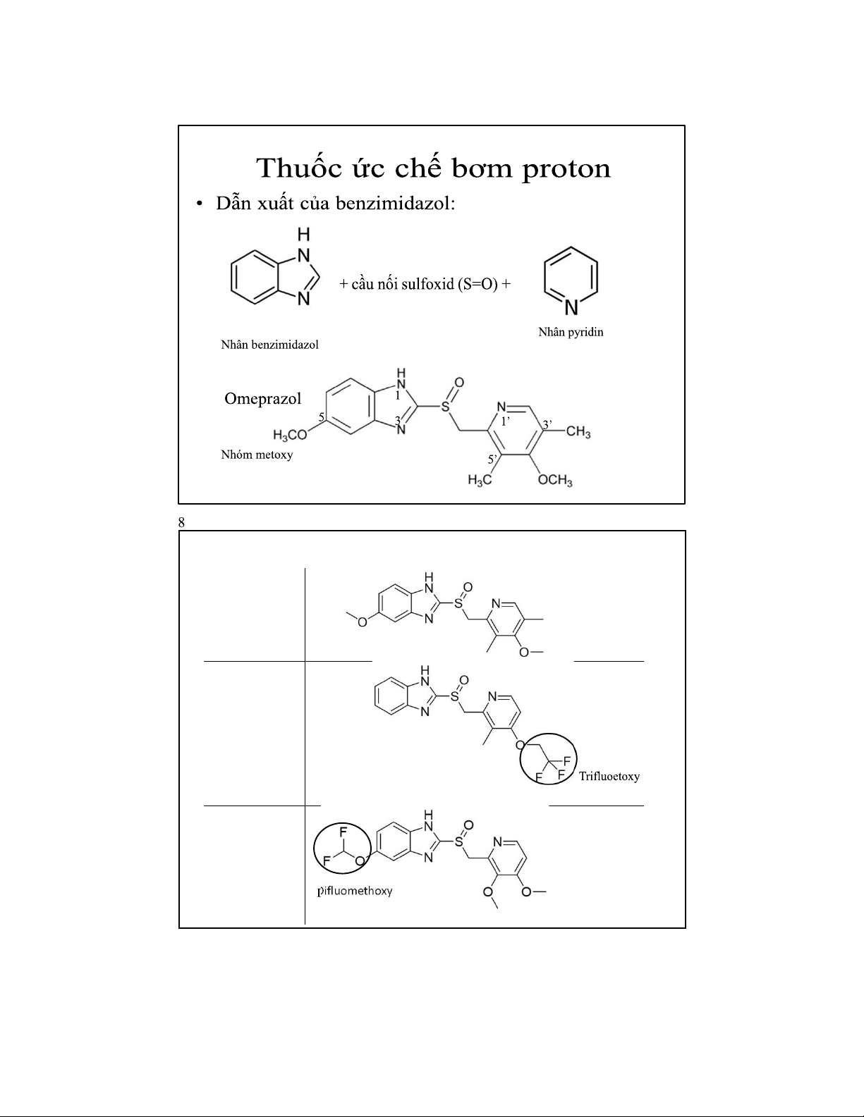 • Thuốc ức chế bơm proton (PPI):omeprazol, lansoprazol, pantoprazol 6 4 lOMoAR cPSD| 46342819 8/16/2022 Ranitidin cytocrom P450 kém 5 lOMoAR cPSD| 46342819 8/16/2022 Nhóm metoxy Omeprazol Lansoprazol Pantoprazol 9 6 lOMoAR cPSD| 46342819 8/16/2022 THUỐC TRUNG HÒA ACID