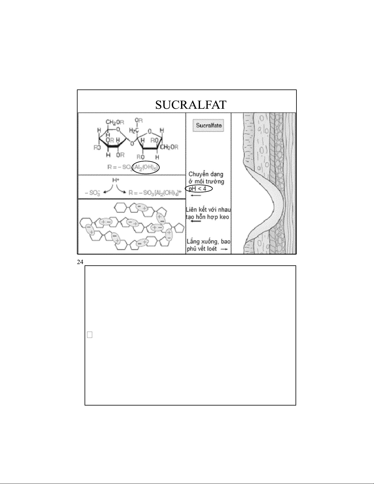 • Hiệu ứng dội ngược khi ngưng Al(OH)3 14 lOMoAR cPSD| 46342819 8/16/2022 23 SUCRALFAT Tác dụng