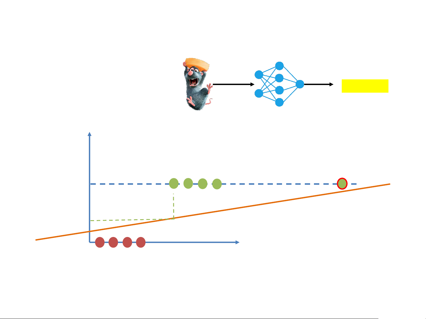 chuột đc đưa vào 1 cái mạng --> định nghĩa ngưỡng béo 500g No phì của chuột Y 250g No 1kg Yes Obesity 2kg Yes 1 3kg Yes 150g No 0 X Strong Linear Classifiers • Obesity classifier Obesity? Weight Obesity 500g No Y 250g No 1kg Yes Obesity y=𝜔x 2kg Yes 1 3kg Yes 150g No > 0.5 0 X Strong Linear Classifiers • Obesity classifier Obesity? Weight Obesity 500g No Y 250g No 1kg Yes Obesity y=𝜔x 2kg Yes 1 3kg Yes 150g No < 0.5 0 X Strong Linear Classifiers • Obesity classifier Obesity? Y Obesity 1 < 0.5? 0 X Strong Linear Classifiers • Obesity classifier Obesity? Y Obesity 1 0 X Strong The Perceptron