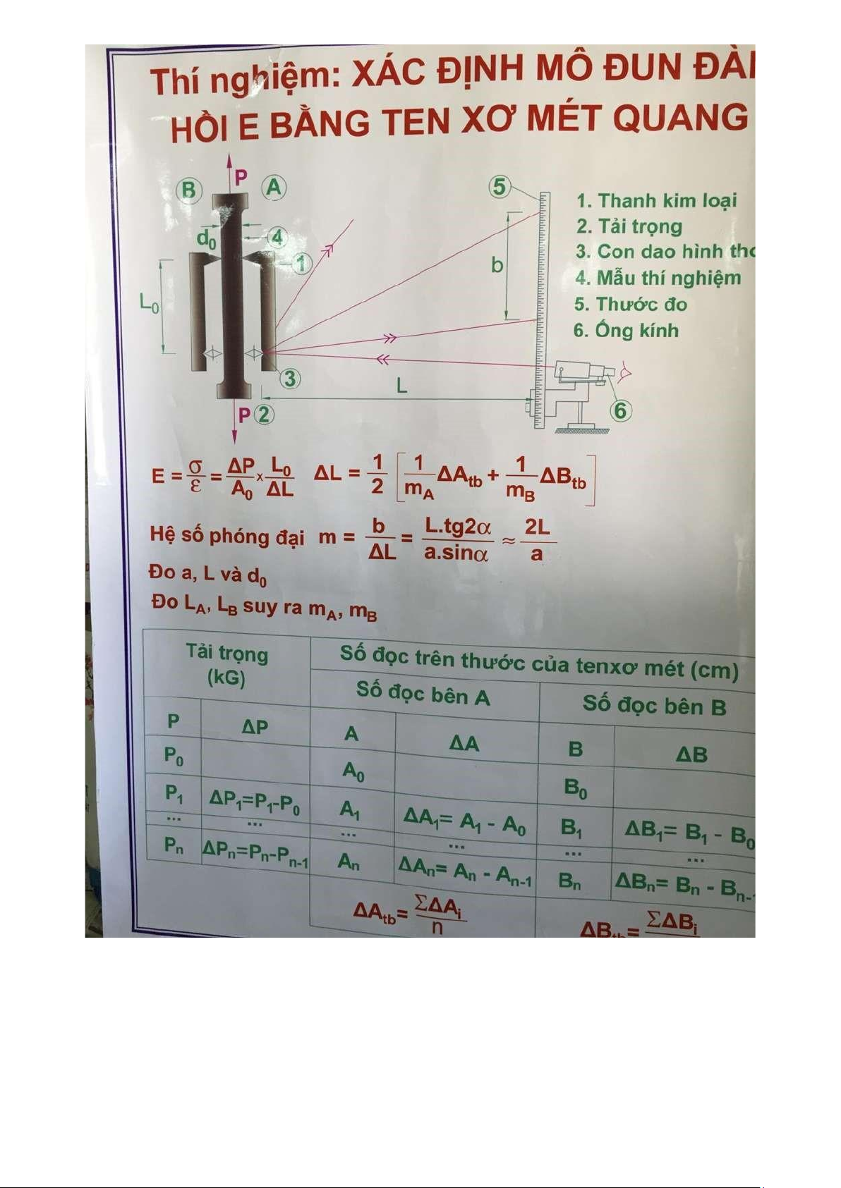 - Đo khoảng cách LA, LB từ gương đến thước của 2 ten xơ mét A và B tương ứng.
