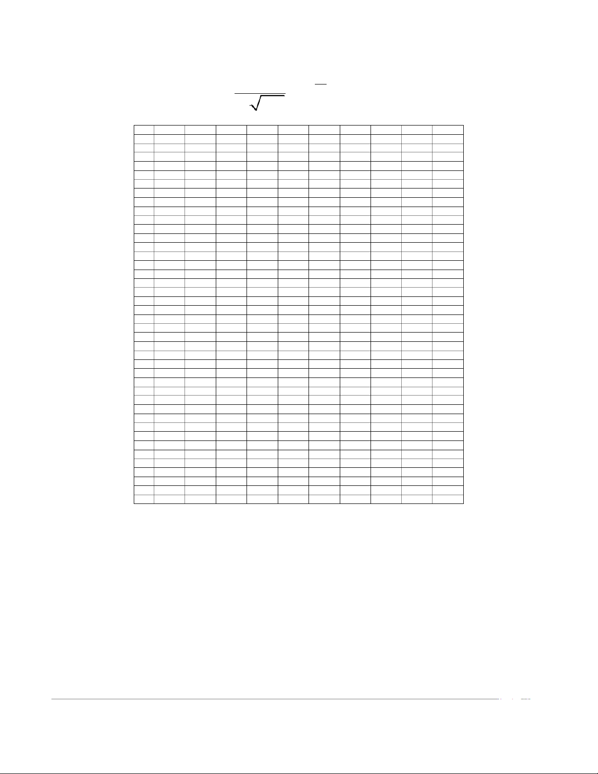 u 0.0427 0.0418 0.0409 0.0401 0.0392 0.0384 0.0375 0.0367 α 1.8 0.0359 0.0351 0.0344 0.0336 0.0329 0.0322 0.0314 0.0307 0.0301 0.0294 1.9 0.0287 0.0281 0.0274 0.0268 0.0262 0.0256 0.0250 0.0244 0.0239 0.0233 2.0 0.0228 0.0222 0.0217 0.0212 0.0207 0.0202 0.0197 0.0192 0.0188 0.0183 2.1 0.0179 0.0174 0.0170 0.0166 0.0162 0.0158 0.0154 0.0150 0.0146 0.0143 2.2 0.0139 0.0136 0.0132 0.0129 0.0125 0.0122 0.0119 0.0116 0.0113 0.0110 2.3 0.0107 0.0104 0.0102 0.0099 0.0096 0.0094 0.0091 0.0089 0.0087 0.0084 2.4 0.0082 0.0080 0.0078 0.0075 0.0073 0.0071 0.0069 0.0068 0.0066 0.0064 2.5 0.0062 0.0060 0.0059 0.0057 0.0055 0.0054 0.0052 0.0051 0.0049 0.0048 2.6 0.0047 0.0045 0.0044 0.0043 0.0041 0.0040 0.0039 0.0038 0.0037 0.0036 2.7 0.0035 0.0034 0.0033 0.0032 0.0031 0.0030 0.0029 0.0028 0.0027 0.0026 2.8 0.0026 0.0025 0.0024 0.0023 0.0023 0.0022 0.0021 0.0021 0.0020 0.0019 2.9 0.0019 0.0018 0.0018 0.0017 0.0016 0.0016 0.0015 0.0015 0.0014 0.0014 3.0 0.0013 0.0013 0.0013 0.0012 0.0012 0.0011 0.0011 0.0011 0.0010 0.0010 3.1 0.0010 0.0009 0.0009 0.0009 0.0008 0.0008 0.0008 0.0008 0.0007 0.0007 3.2 0.0007 0.0007 0.0006 0.0006 0.0006 0.0006 0.0006 0.0005 0.0005 0.0005 3.3 0.0005 0.0005 0.0005 0.0004 0.0004 0.0004 0.0004 0.0004 0.0004 0.0003 3.4 0.0003 0.0003 0.0003 0.0003 0.0003 0.0003 0.0003 0.0003 0.0003 0.0002 3.5 0.0002 0.0002 0.0002 0.0002 0.0002 0.0002 0.0002 0.0002 0.0002 0.0002 3.6 0.0002 0.0002 0.0001 0.0001 0.0001 0.0001 0.0001 0.0001 0.0001 0.0001 3.7 0.0001 0.0001 0.0001 0.0001 0.0001 0.0001 0.0001 0.0001 0.0001 0.0001 3.8 0.0001 0.0001 0.0001 0.0001 0.0001 0.0001 0.0001 0.0001 0.0001 0.0001 3.9 0.0000 0.0000 0.0000 0.0000 0.0000 0.0000 0.0000 0.0000 0.0000 0.0000 4.0 0.0000 0.0000 0.0000 0.0000 0.0000 0.0000 0.0000 0.0000 0.0000 0.0000 227 (n) GI TRÞ TÞI H¾N STU ENT tñ ñ 0.2 0.15 0.1 0.05 0.025 0.01 0.005 0.0025 0.001 n 1