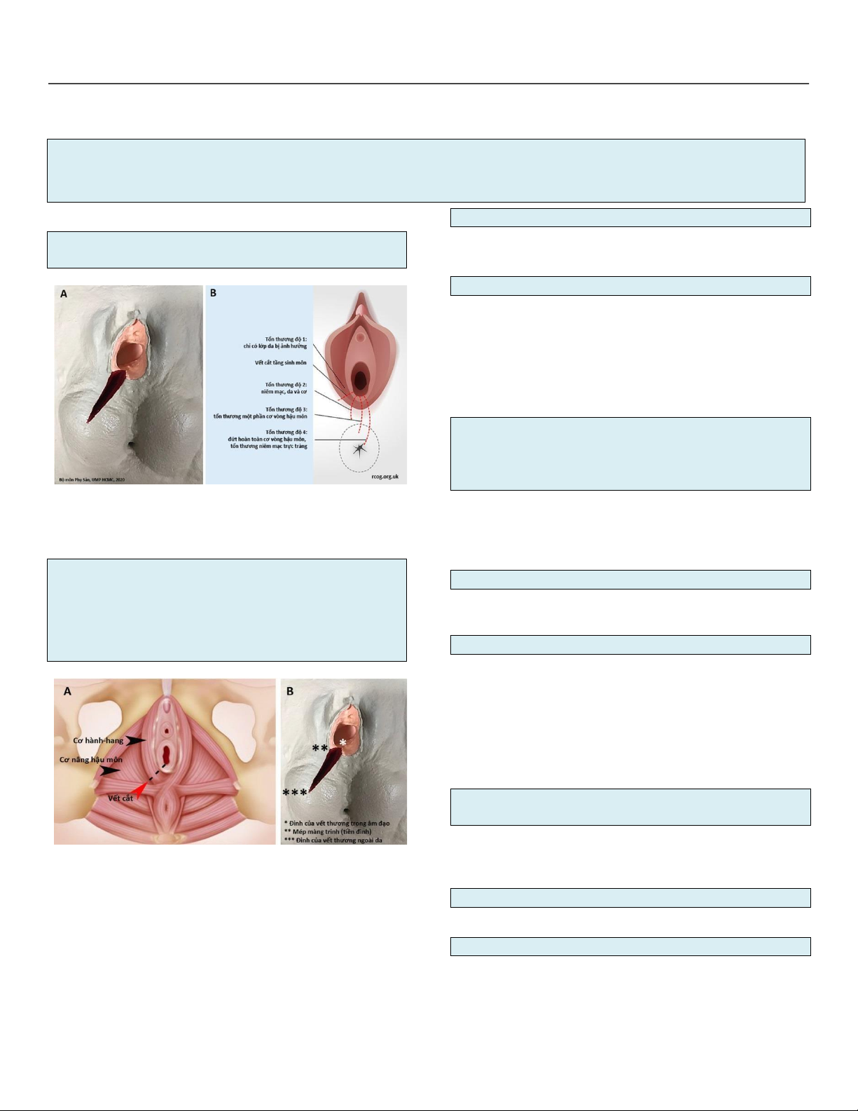 độ 2. Vết thương cắt tầng sinh môn gồm 3 lớp: