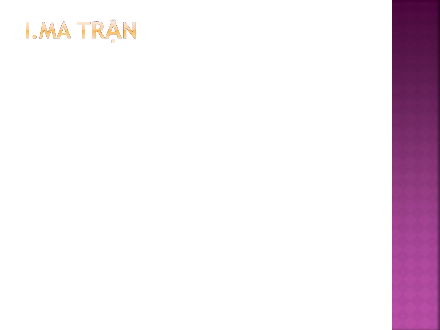 với n hàng và n cột, ta gọi là ma trận cấp n. a a ... a 11 12 1n a a ... a 21 22 2n ... ... ... ... a a ... a n1 n2 nn Các phần tử a ,a ,...,a 11 22