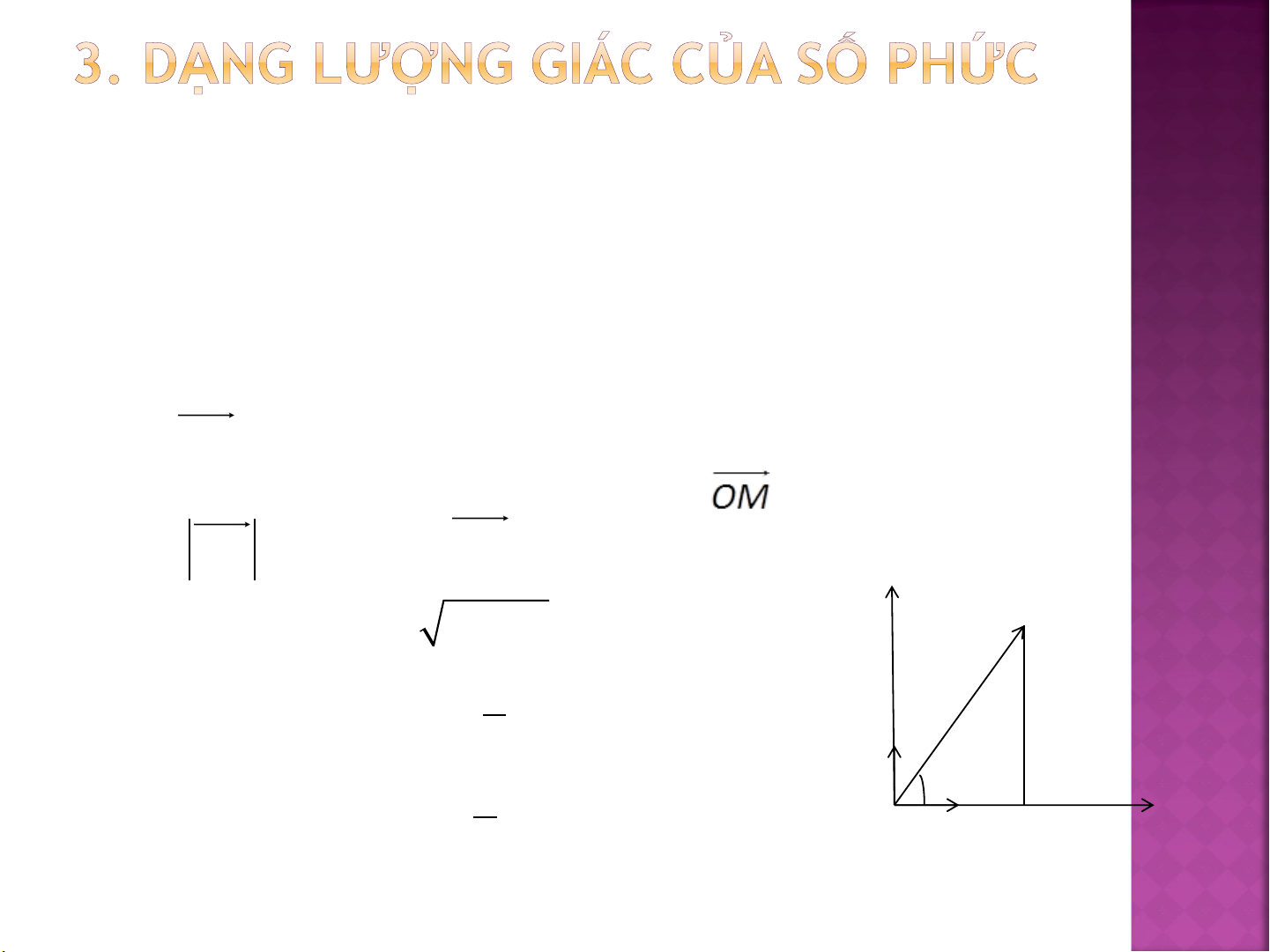 Độ dài của véctơ gọi là môđun của số phức , ký hiệu OM z là z Ta có 2 2 z r a b 2 Góc