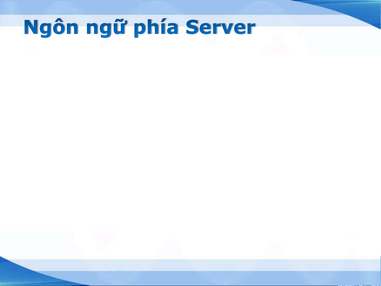 tĩnh HTML và được gửi về client. PHP ASP, ASP.NET JSP Perl Python (Django) Ruby (Ruby on Rails) ColdFusion Chi phí thấp