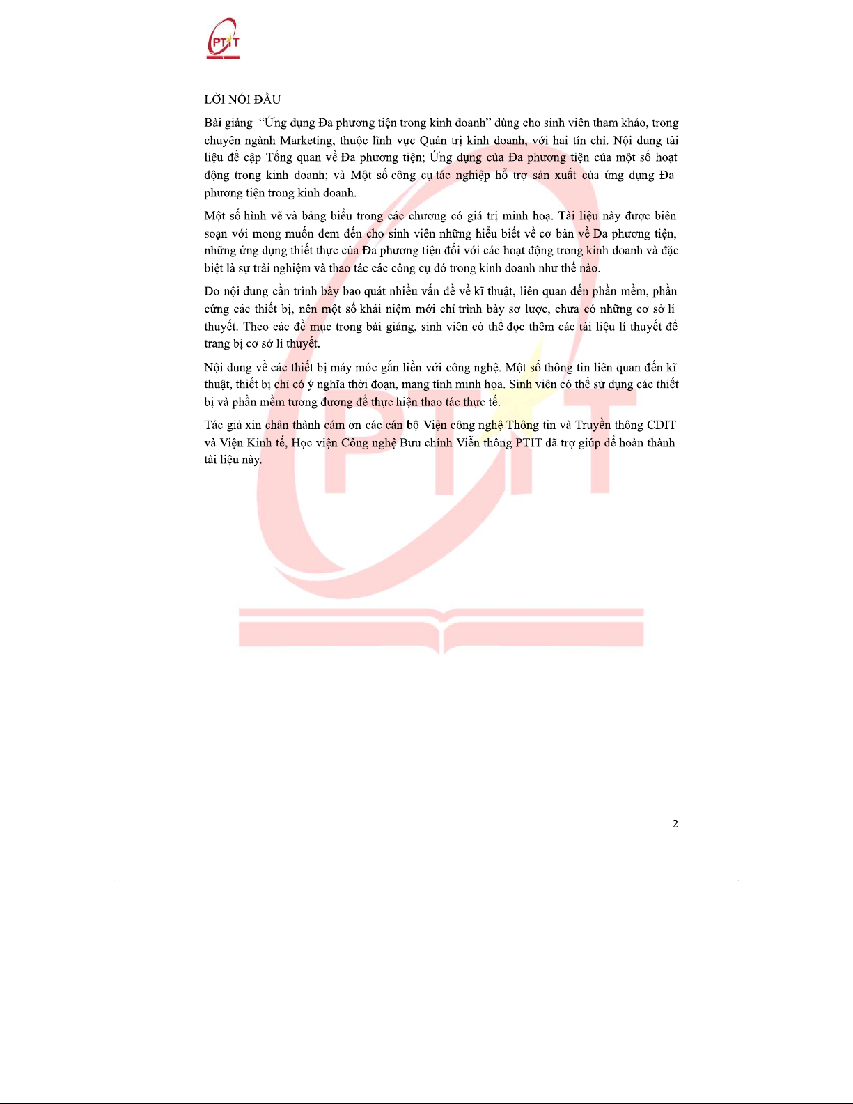Đề cương chi tiết môn Ứng dụng đa phương tiện trong kinh doanh | Học viện Công Nghệ Bưu Chính Viễn Thông