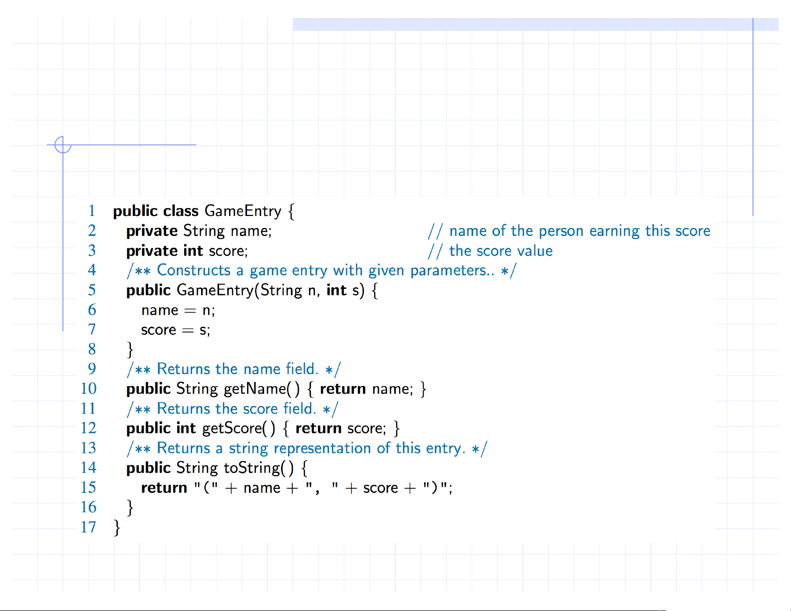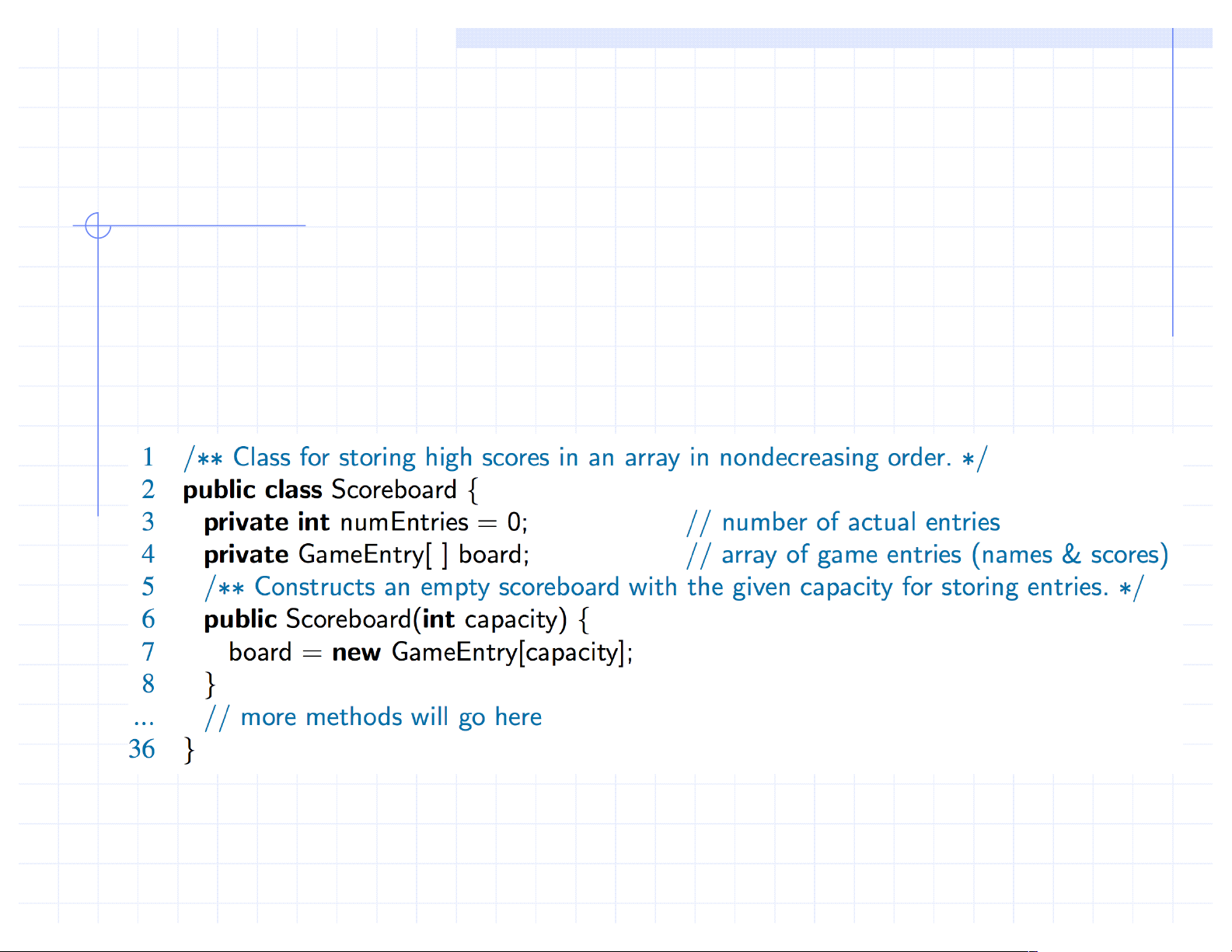 © 2014 Goodrich, Tamassia, Goldwasser Arrays 6 Java Example: Game Entries q