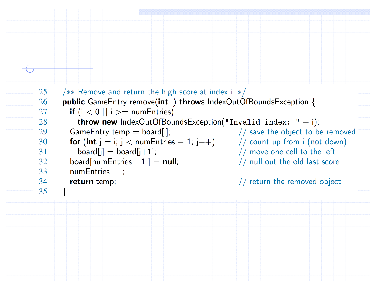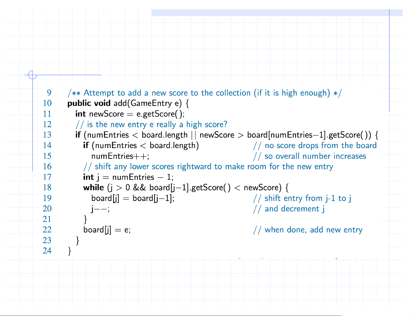 The elements of board are objects of class GameEntry n Array board is sorted by score