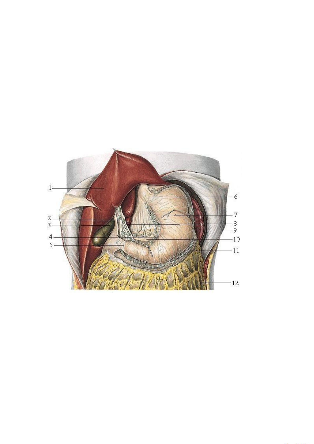 7. Thân vị 8. Mạc nối nhỏ 9. Lách 10. Tụy 11. Bờ cong vị lớn 12. Mạc nối lớn 1. Tâm vị