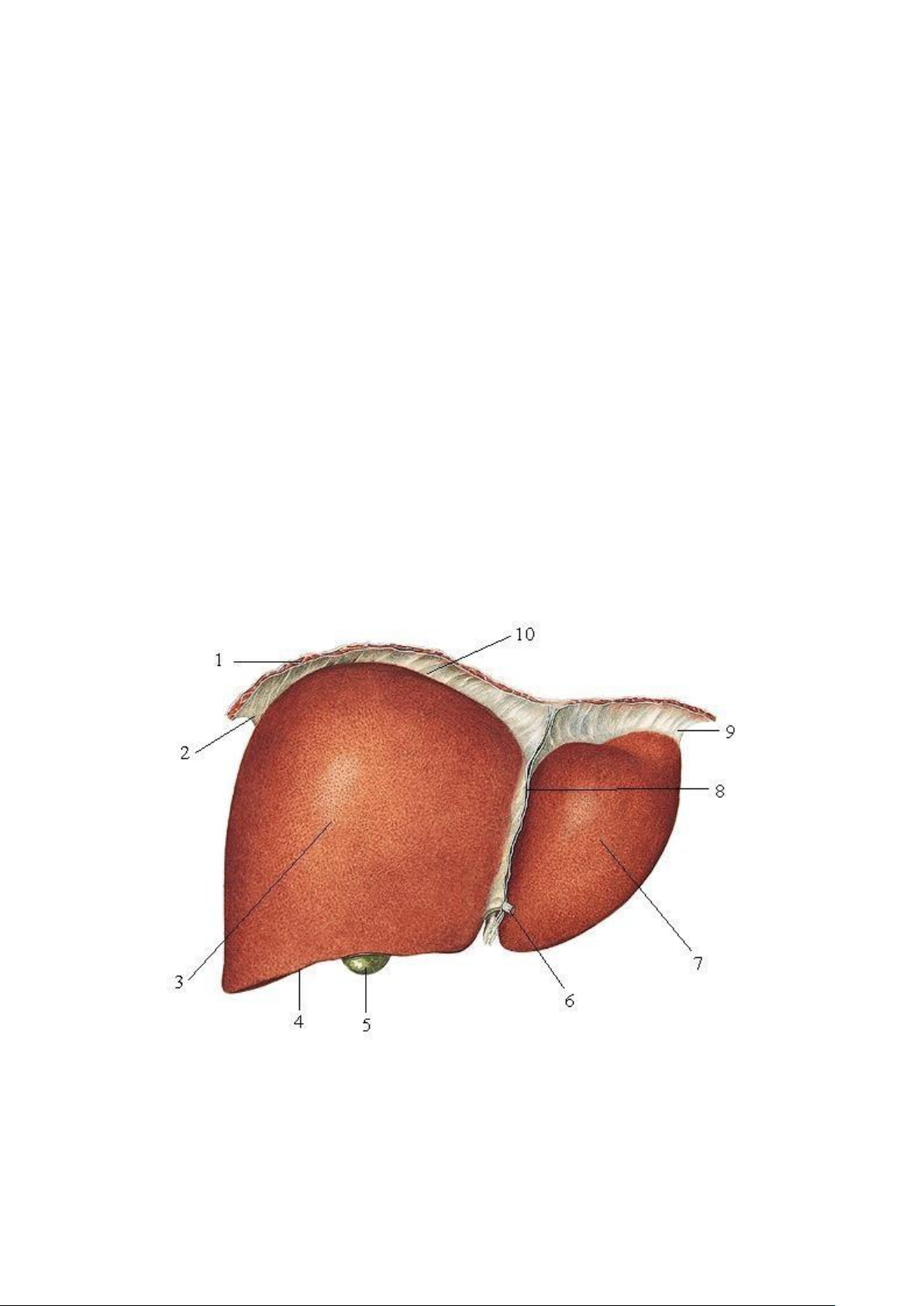 7. Thùy trái 8. Dây chằng liềm 9. Dây chằng tam giác trái 10. Dây chằng vành -
