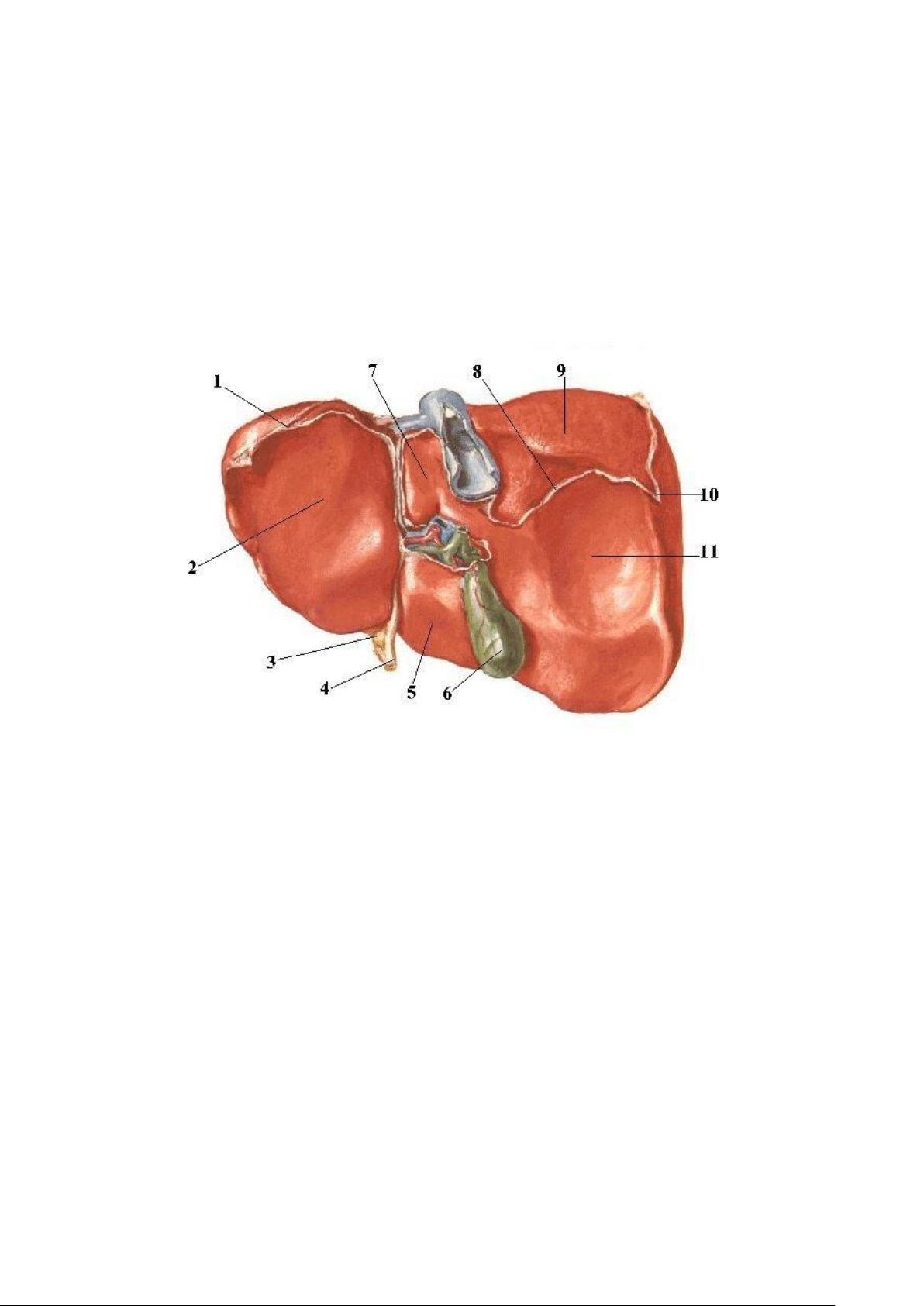1. Dây chằng tam giác trái 2. Ấn dạ dày 3. Dây chằng liềm 4. Dây chằng tròn 5. Thuỳ vuông