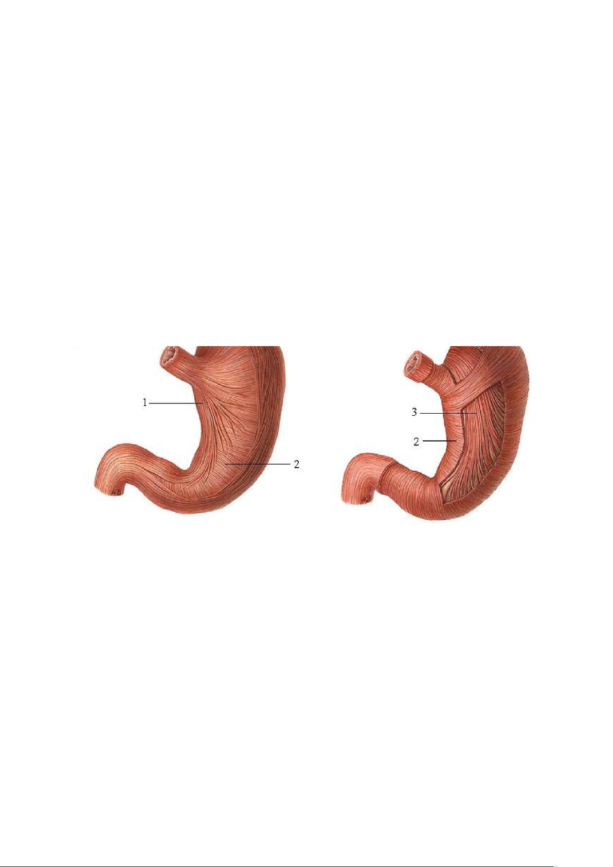 Hình 5. 2. Lớp cơ của dạ dày 1. Lớp cơ dọc 2. Lớp cơ vòng 3. Lớp cơ chéo 3.1. Cơ dọc