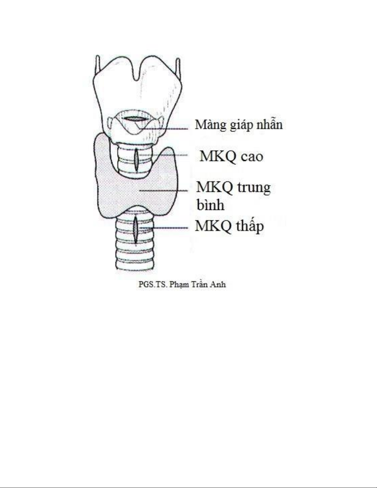 MKQ thấp khoảng đốt sụn 4-5 hoặc 5-6, dưới eo tuyến giáp; ưu điểm có thể mở