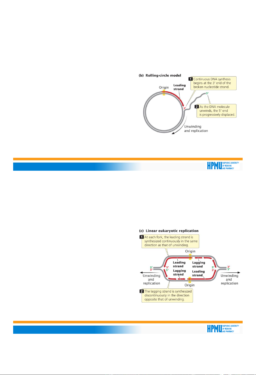 - Đầu 5′ của sợi bị đứt bị dịch chuyển khỏi vòng tròn. - Không có bóng sao chép. Tái bản kiểu vòng xoay 1.2. Tái bản DNA Các mô hình tái bản