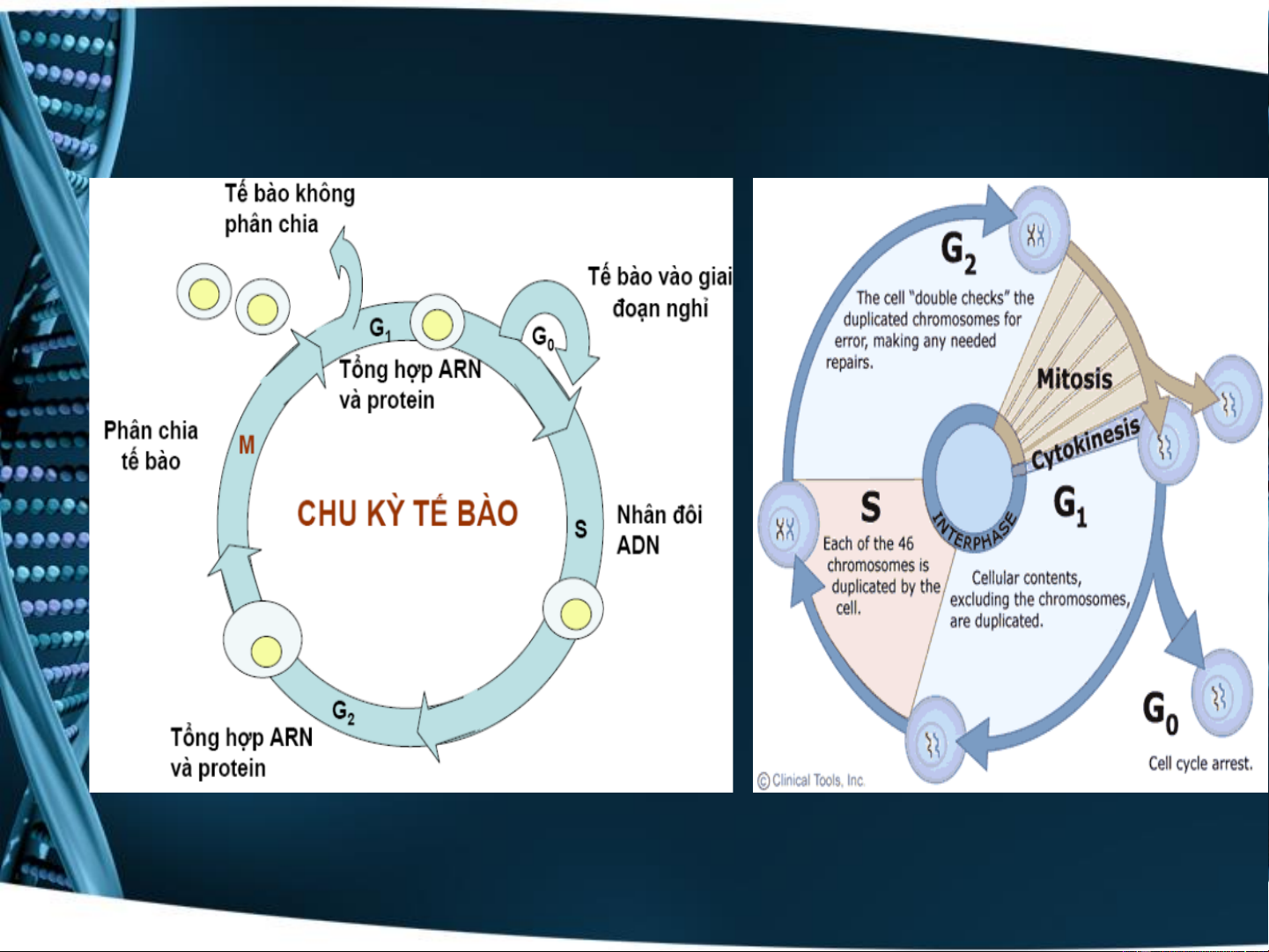 - Thời gian 1 chu kỳ tế bào khác nhau tùy loại tế bào.
