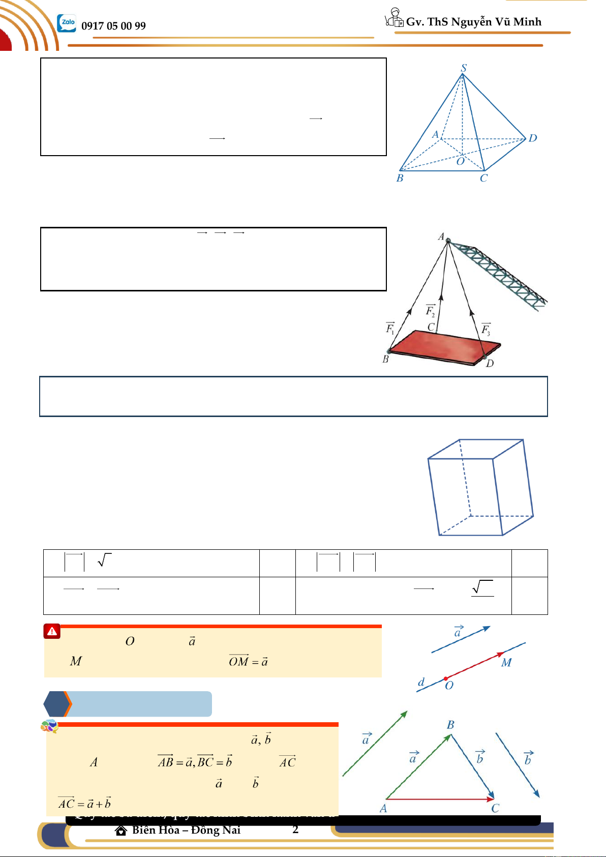 Cho điểm và vectơ . Khi đó, tồn tại duy nhất điểm trong không gian sao cho . 2 Tổng v à hiệu hai vectơ