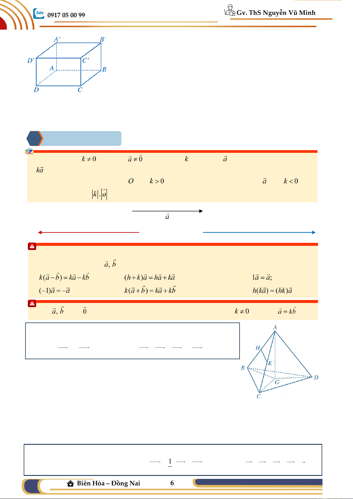 0917 05 00 99 (Toán – Vật Lí THPT) 3 Tích vec tơ với một số ● Cho số thực và vectơ