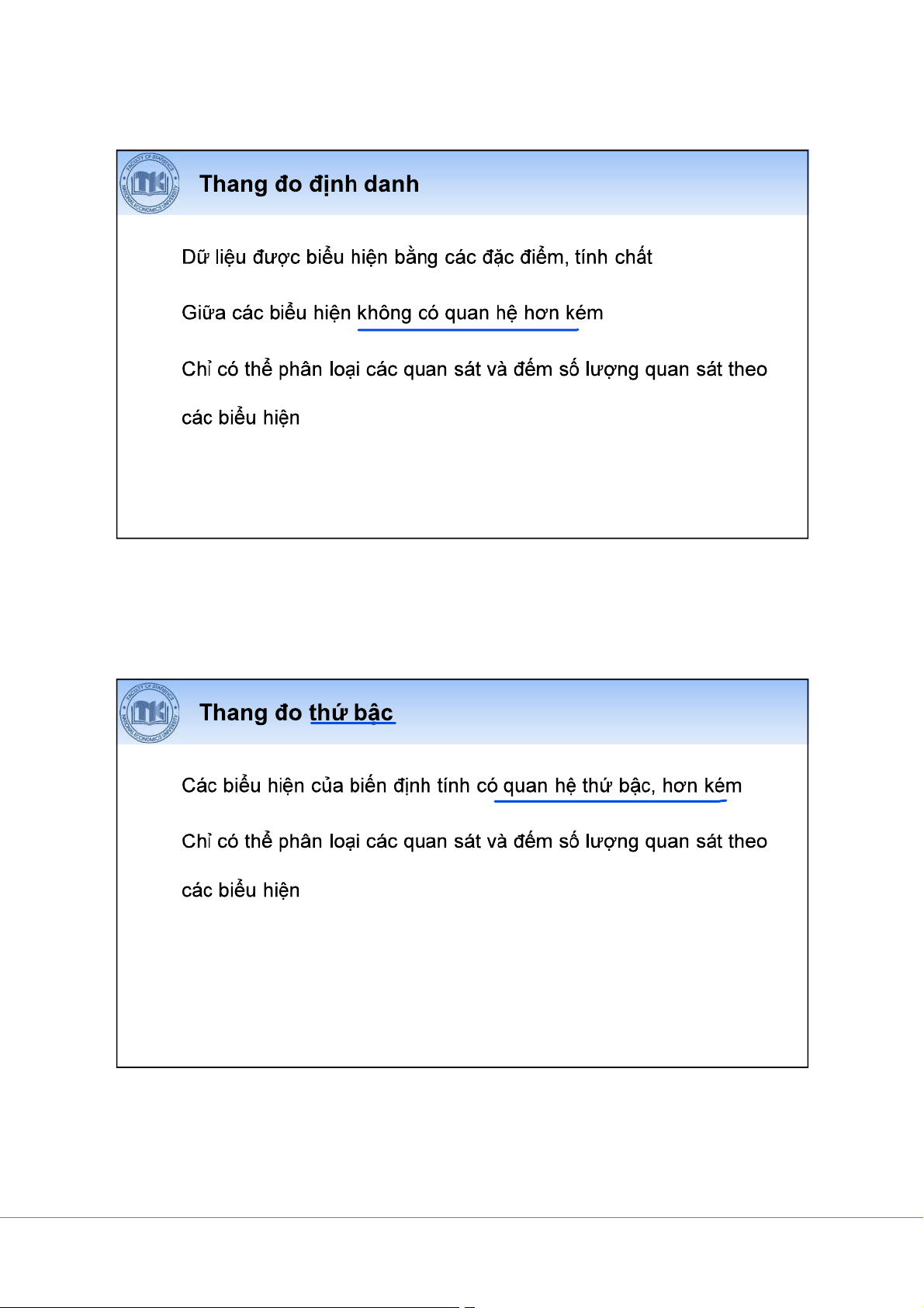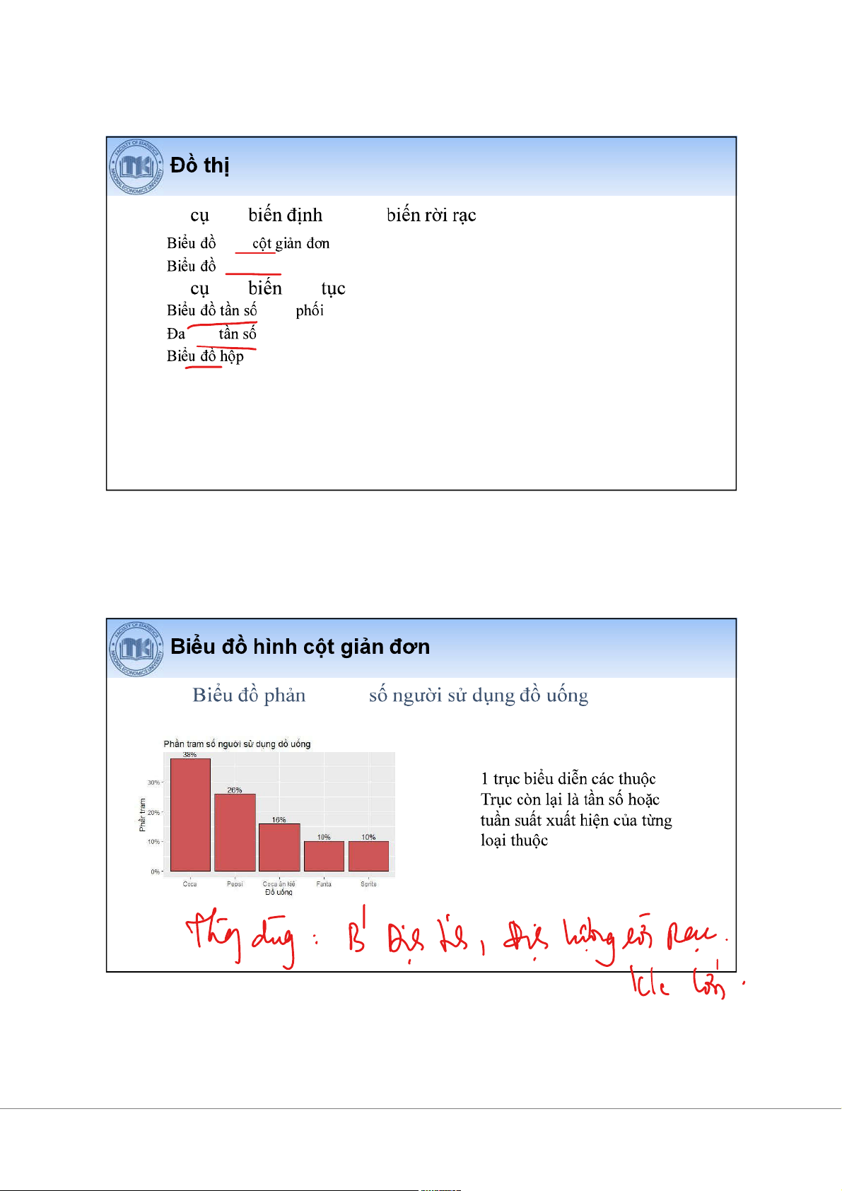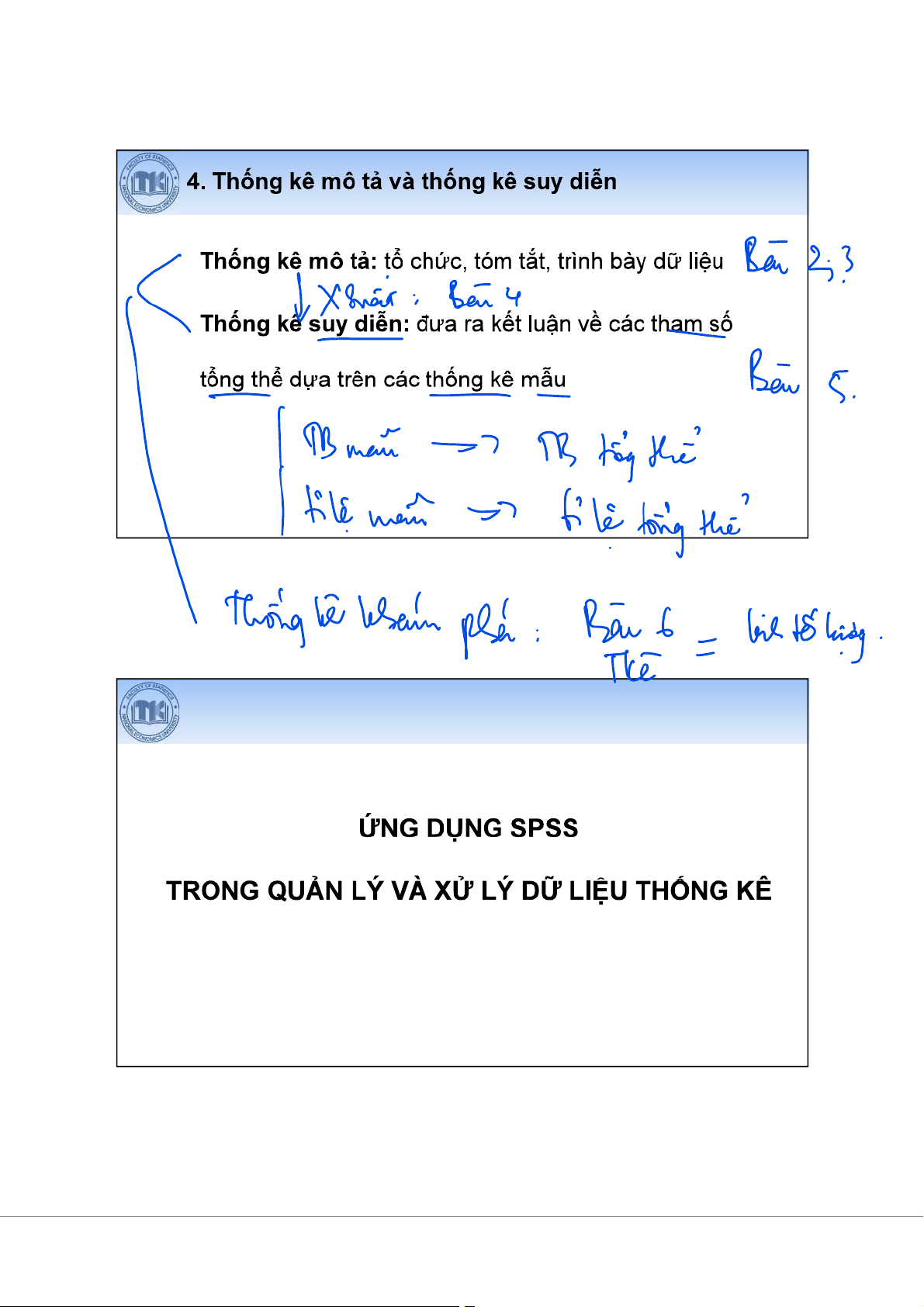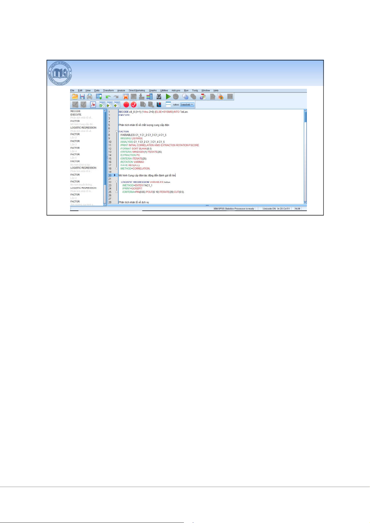 SPSS (Statistical Package for Social Sciences) Các màn hình chính: • • • • Màn hình cú pháp 15 16 17 18 Màn hình cú pháp (Syntax) 19 Bài 2 I II Trình bày Trình bày 1 I. Trình bày 2 : phân •(Frequency): là giá nào •phân kê các giá •Các phân : •phân • phân có cách . 3 phân •: coi giá là •vi áp : •tính • có ít giá 4 phân có cách •: ghép vi vào •vi áp : có giá liên •Lý do hành phân cách 5 Các phân có cách •có cách nhau •có cách không nhau 6 phân có cách nhau •VD: phân (USD) 30 . ( ( ) ) : < $100 2 (ghd): giá . $100 – < $200 5 trên (ght): giá cao $200 – <$300 8 KCT: vi $300 – <$400 9 ghd ght Phân KCT : $400 – <$500 5 -nào là ? $500 – <$600 1 -dùng . 30 7 phân có cách không nhau •VD khác phân .(USD). nhân viên $60 4 sao phân > $60 – $80 6 cách không nhau? > $80 – $90 6 Tính cách > $90 – $120 6 nào? > $120 3 8 phân : •Dãy phân còn có tên là dãy tính (phân theo tính) và dãy (phân theo ). 9 Các thành dãy phân < $100 50 2 2 6.7 6.7 $100 – < $200 150 5 7 16.7 23.3 $200 – <$300 250 8 15 26.7 50.0 $300 – <$400 350 9 24 30.0 80.0 $400 – <$500 450 5 29 16.7 96.7 $500 – <$600 550 1 30 3.3 100.0 Total 30 ý: có phân (mi=fi/hi) khi KCT không nhau. 10 •Công cho tính và . •hình / Simple bar charts •hình tròn / Pie charts •Công cho liên : •phân / Histograms •giác •/ Boxplots 11 •VD: ánh % . - tính - tính 12 hình tròn •VD: ánh % . - S - mô . 13 Nên hình hay tròn? 14 phân /Histograms • 15 Hình Histogram: Hi stogr am of S ymmetri c 50 40 30 20 10 0 -2.4 -1.6 -0.8 0.0 0.8 1.6 2.4 Symmet ric 16 Hình Histogram: