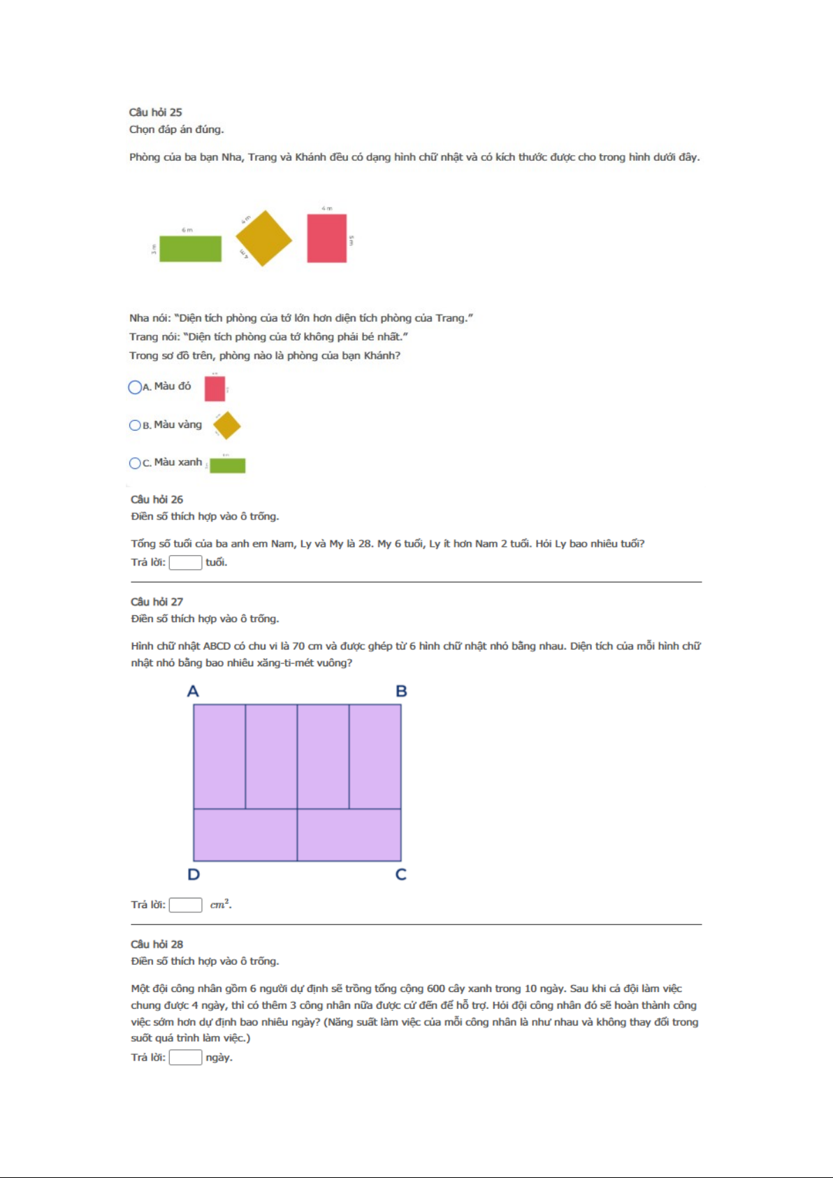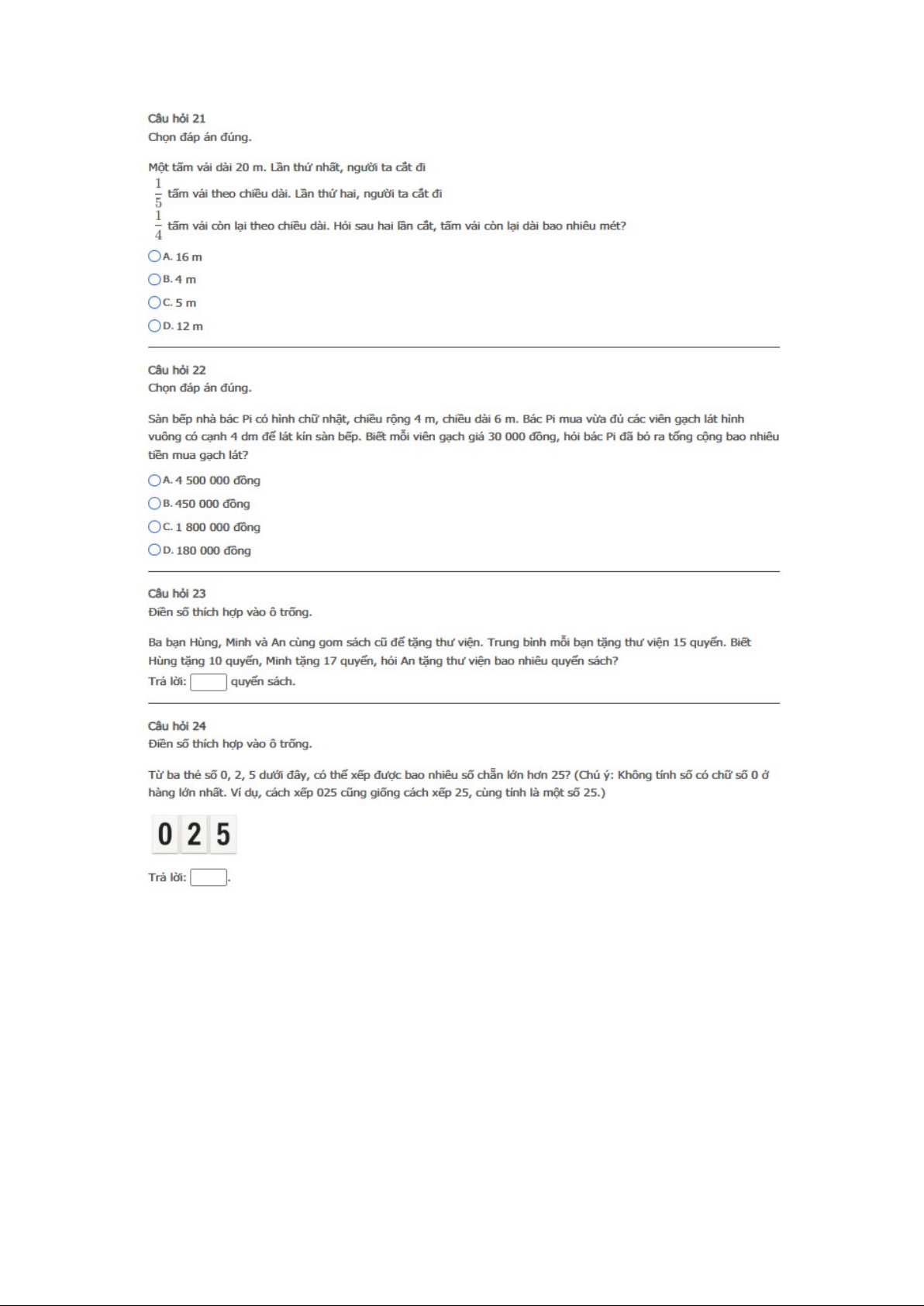 Bài Khởi động - Bài thi thử online (có đáp án) - Sân chơi Toán học Việt Nam Khối 5 Năm học 2025 - 2026