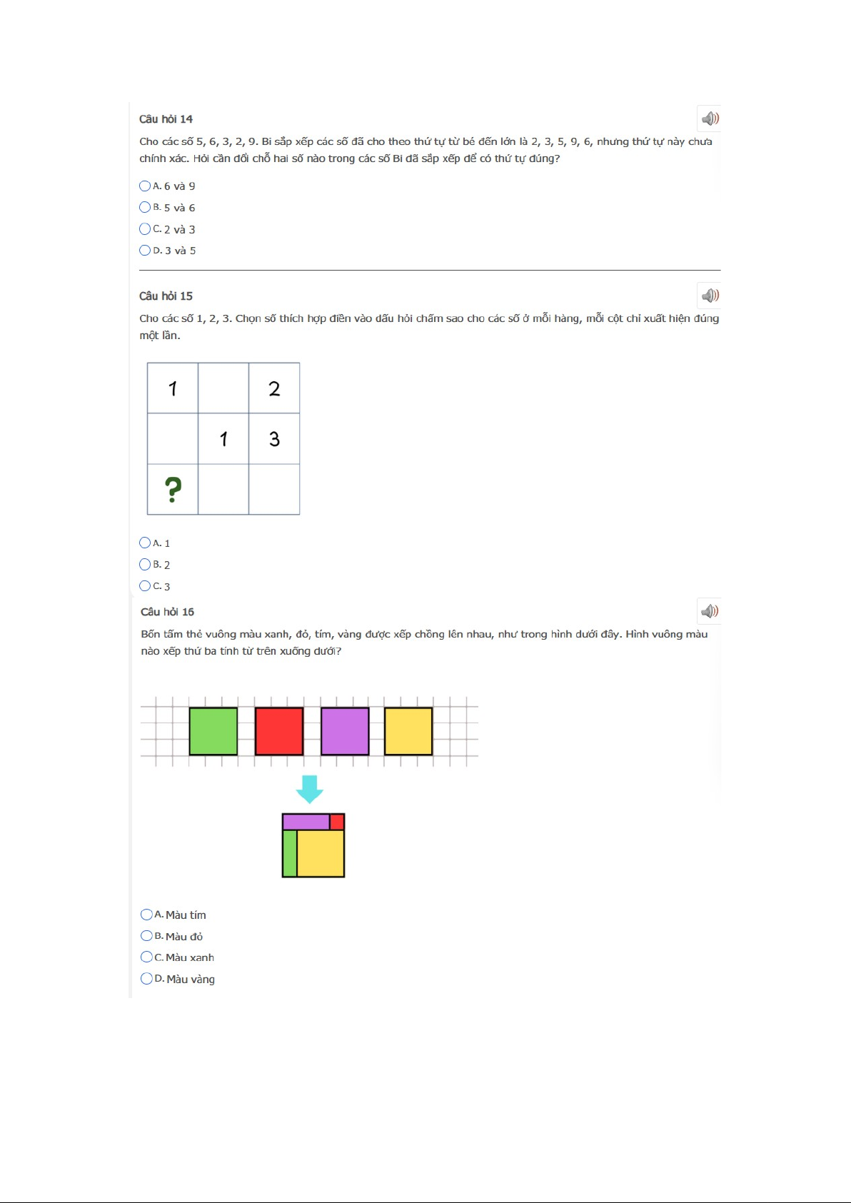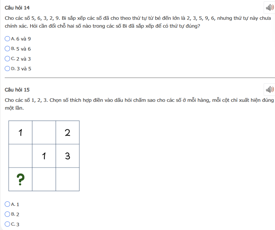 Bài khởi động - Bài thi thử online (có đáp án) - Sân chơi Toán học VIệt Nam Khối 1 Năm 2025 - 2026