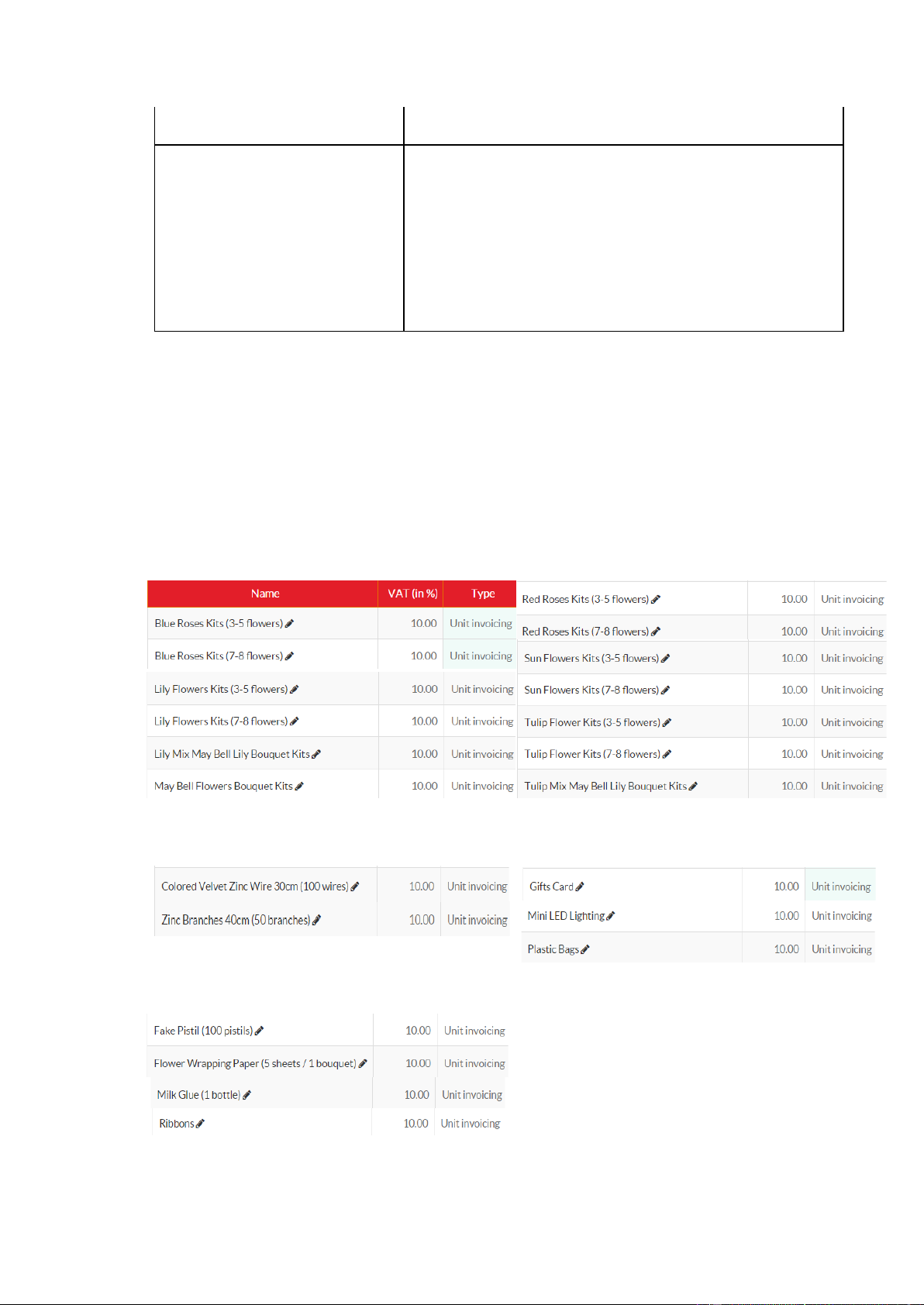* Product Group 1 (main products): 13 sets of flower kits