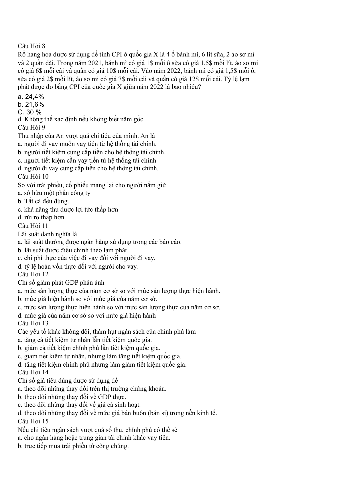d. sẽ tăng và CPI của Việt Nam sẽ không đổi Câu Hỏi 26