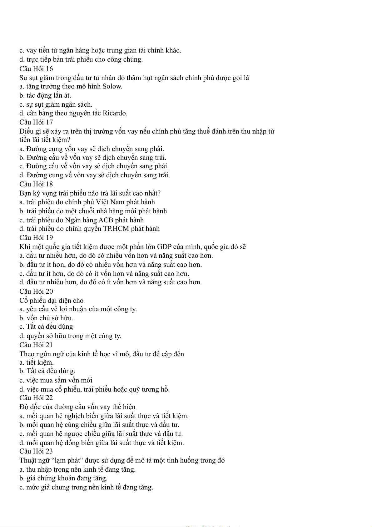 d. tiết kiệm nhiều hơn, vì vậy đường cung vốn vay dốc lên. Câu Hỏi 30