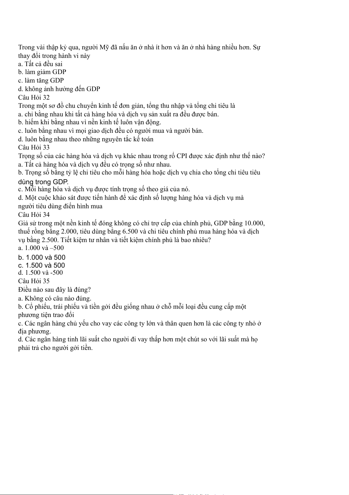 d. không ảnh hưởng đến GDP Câu Hỏi 32