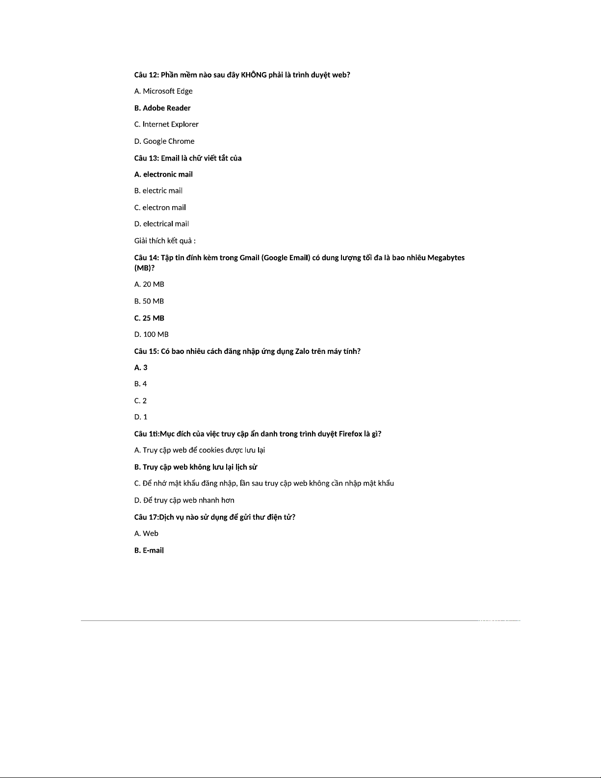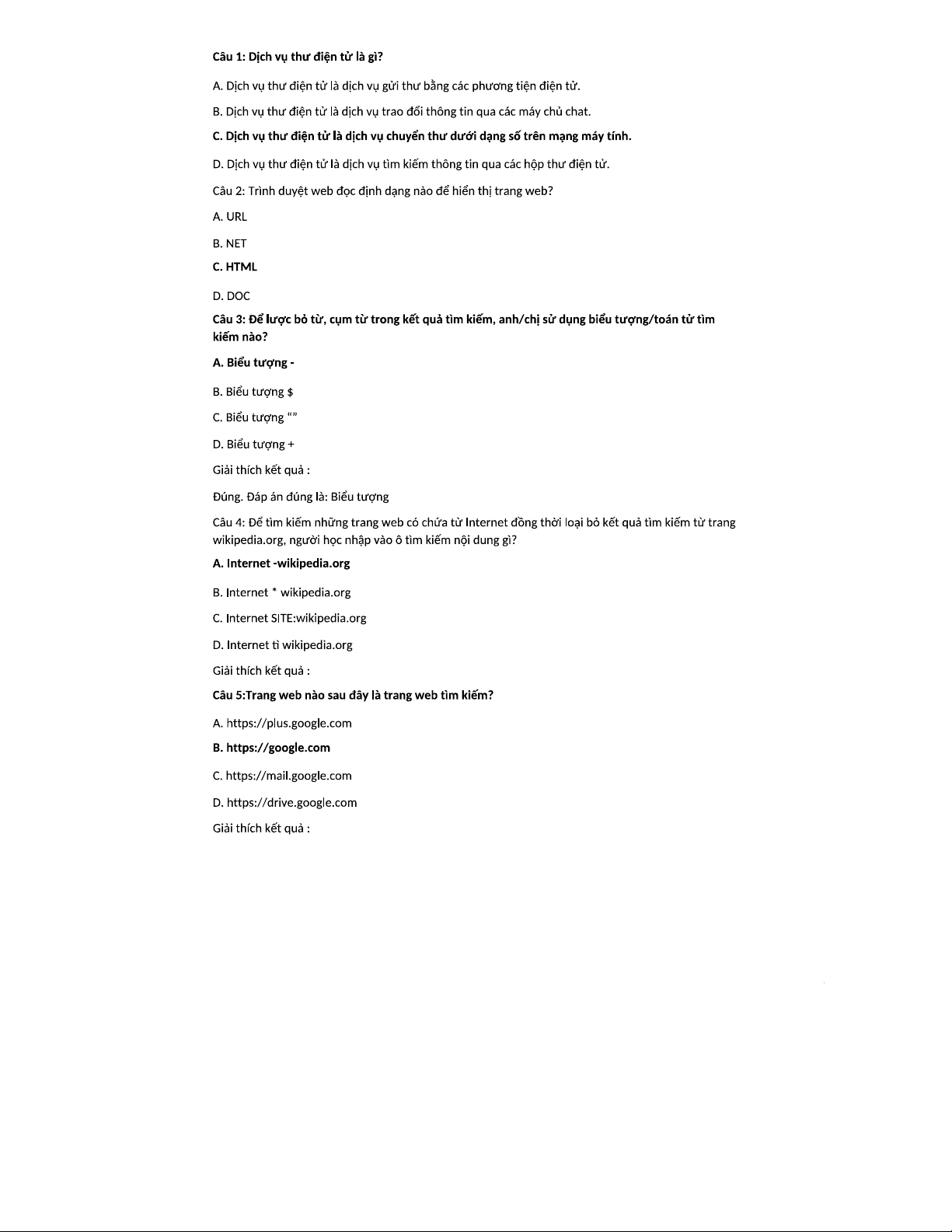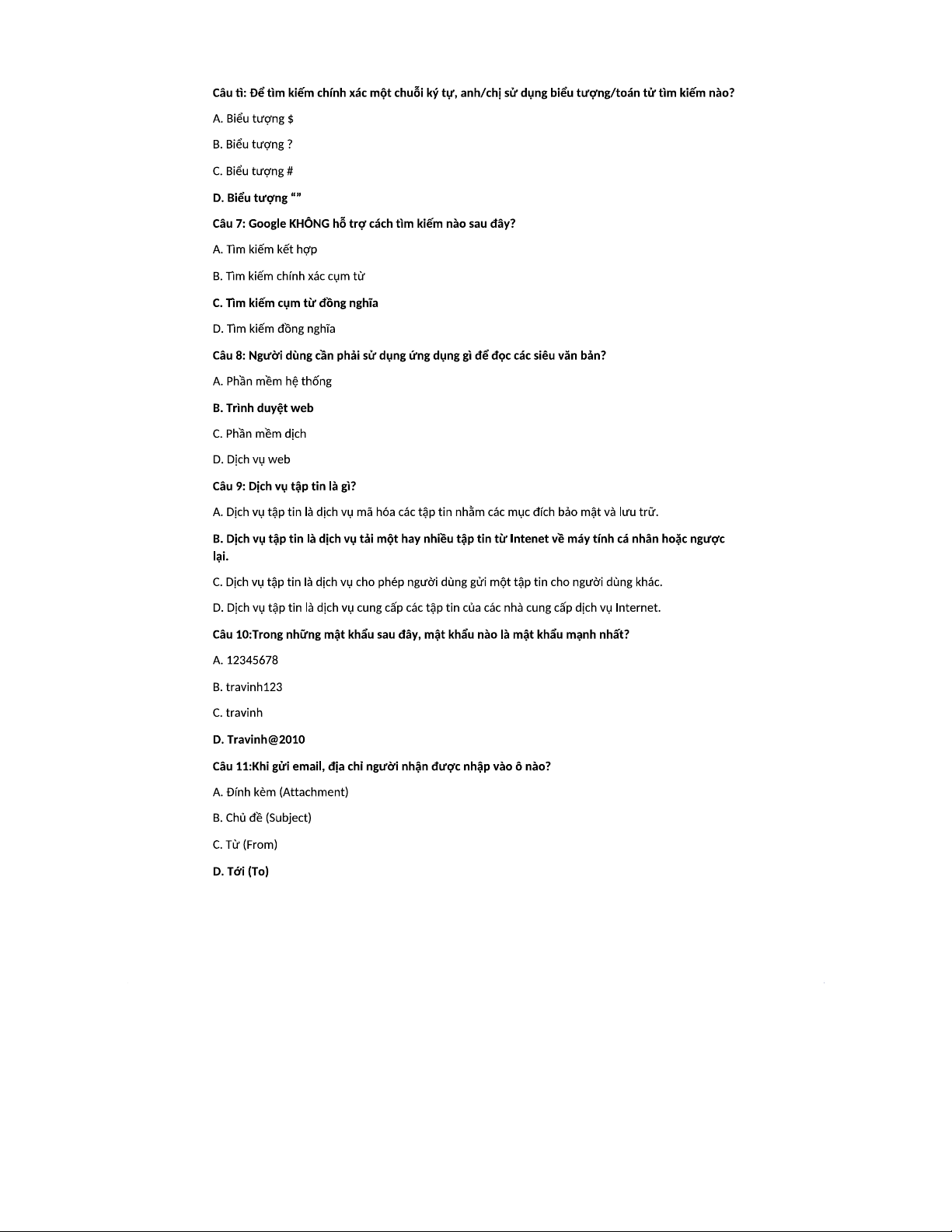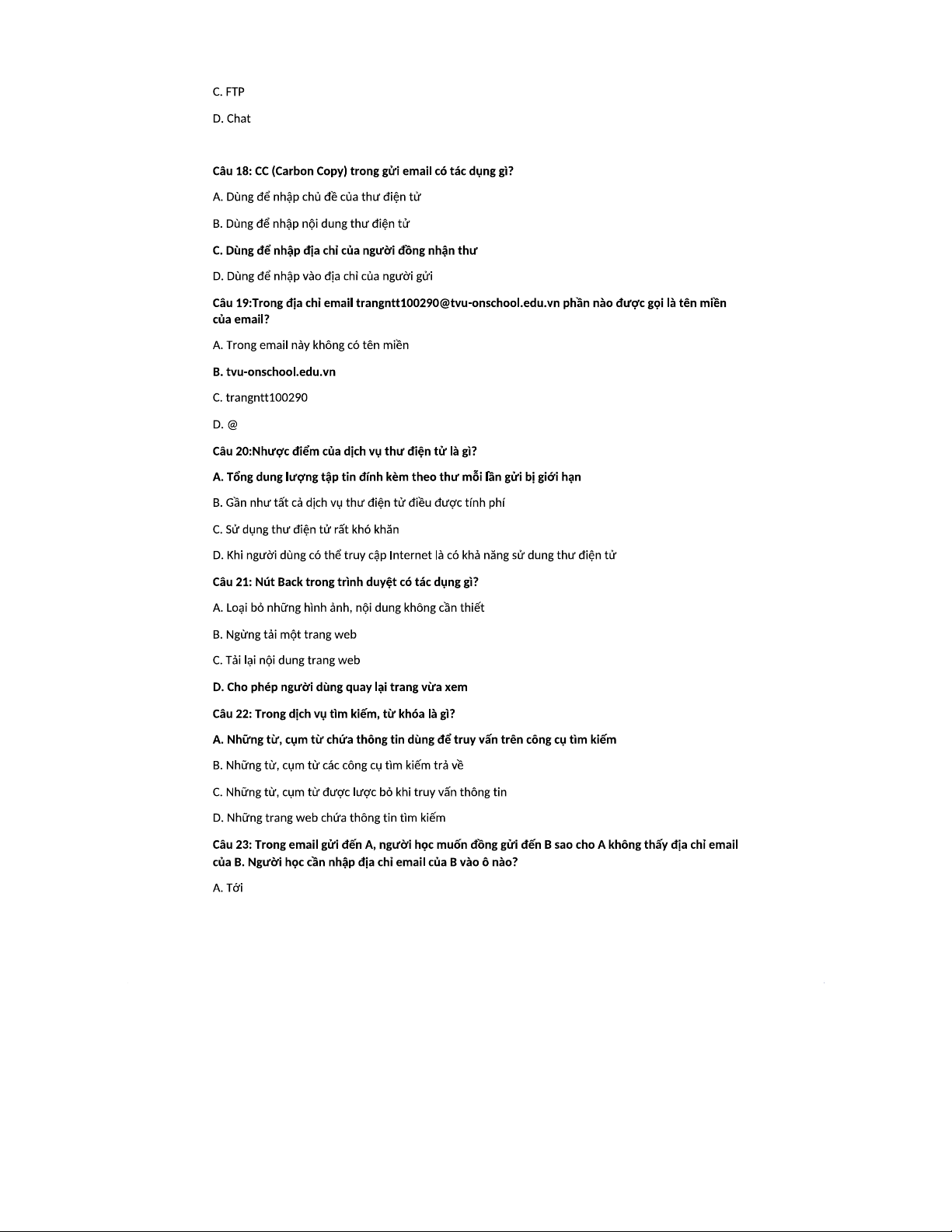 Bài kiểm tra chương II: Kiến thức về Dịch vụ Internet (Mã môn: TVU-ON)