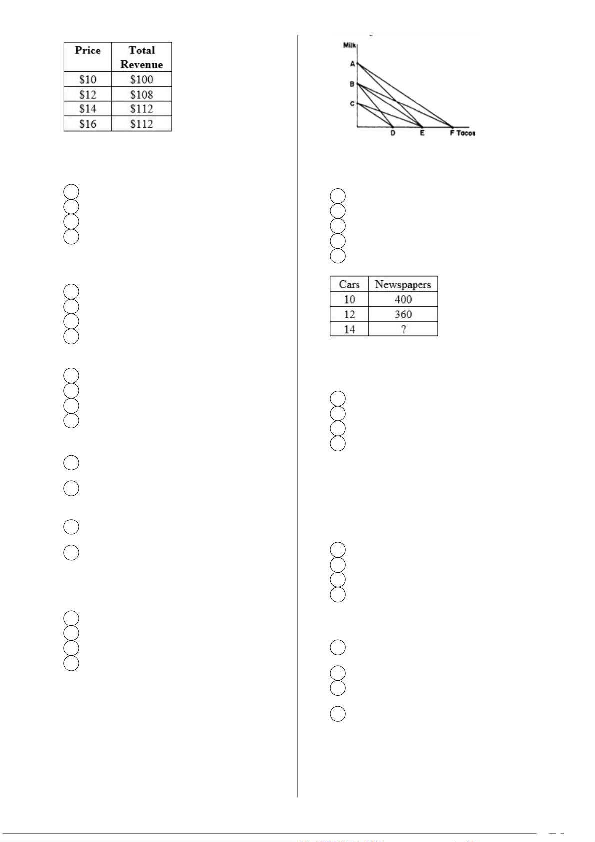 Trong bảng trên, nếu giá tăng từ 10 đô la lên 12 đô