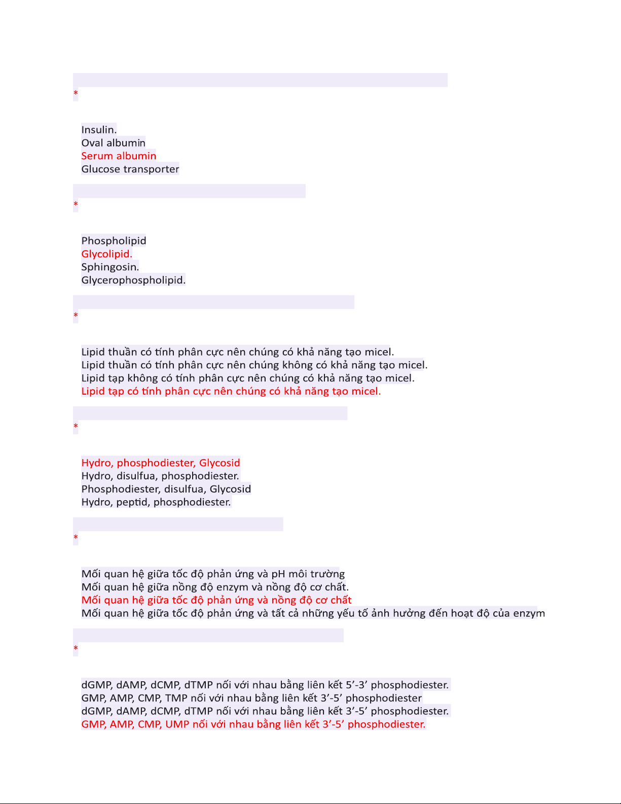 Trong các glucid sau, các chất thể hiện tính khử là * Glucose, fructose, lactose.
