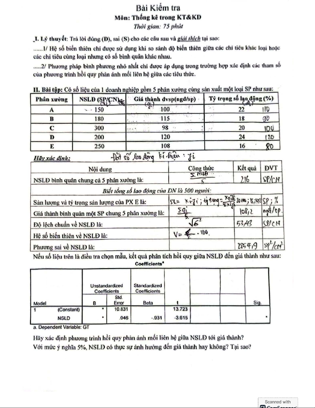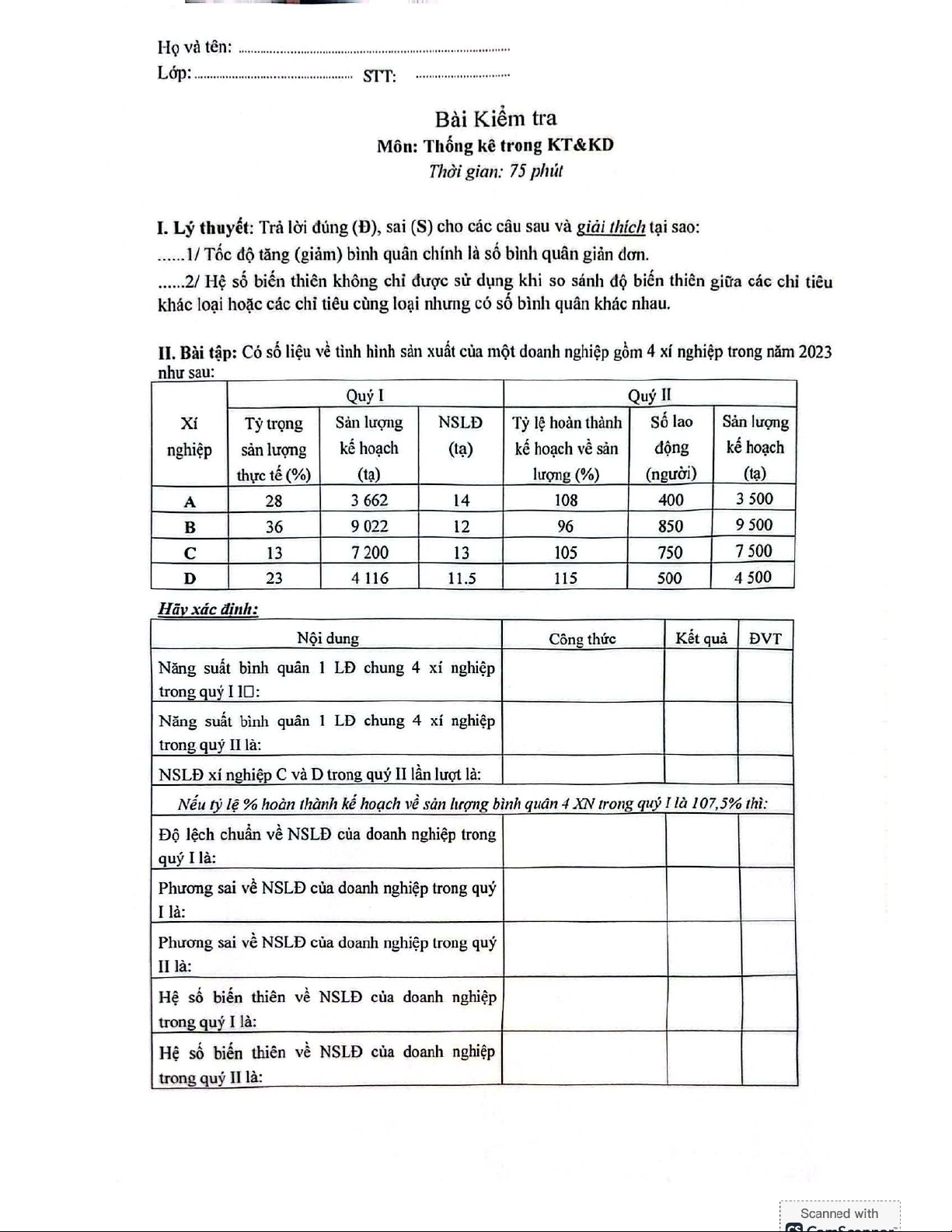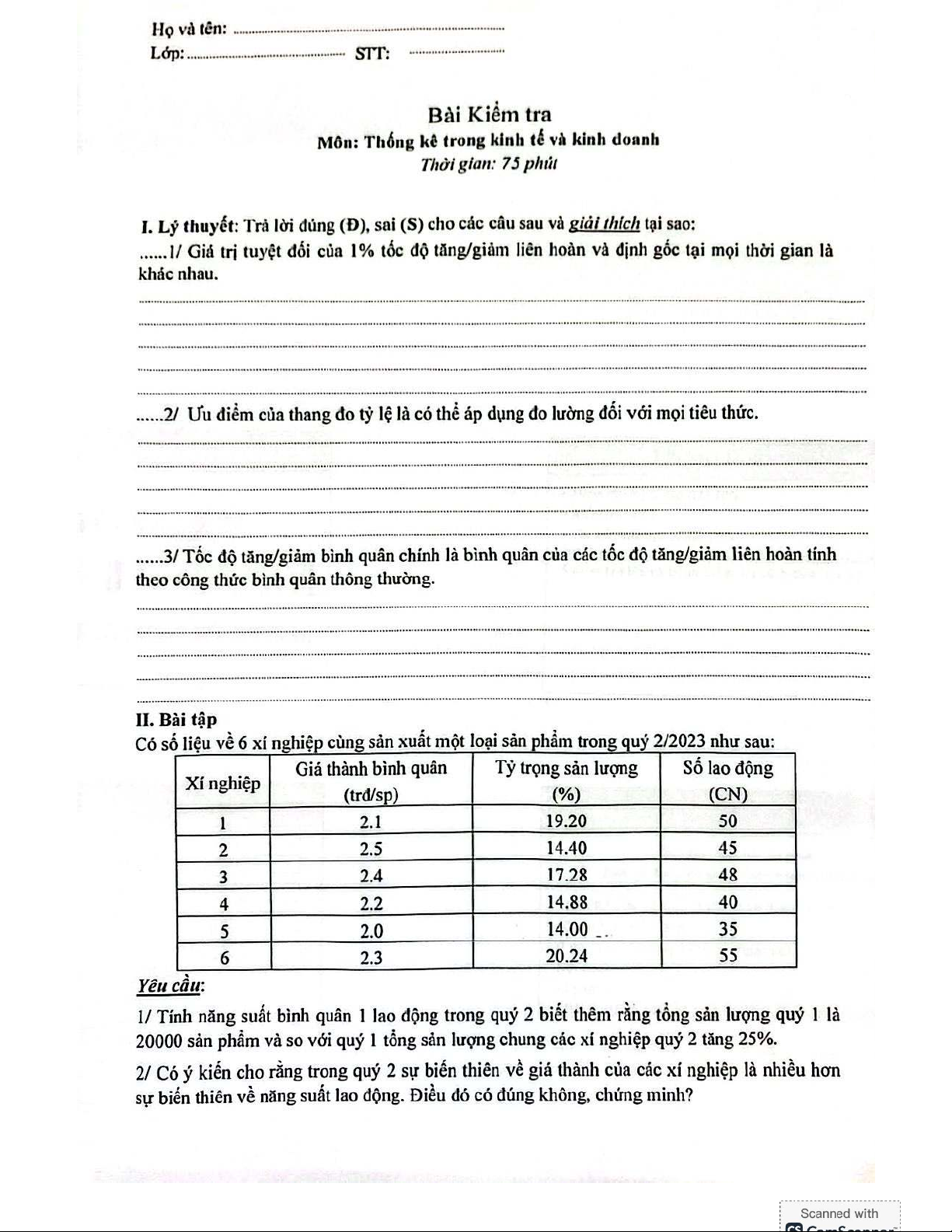 Bài Kiểm tra Giữa kỳ môn Thống kê trong kinh tế và kinh doanh | Trường Đại học Kinh tế Quốc dân. Tài liệu giúp bạn tham khảo, ôn tập và đạt kết quả cao. Mời đọc đón xem!